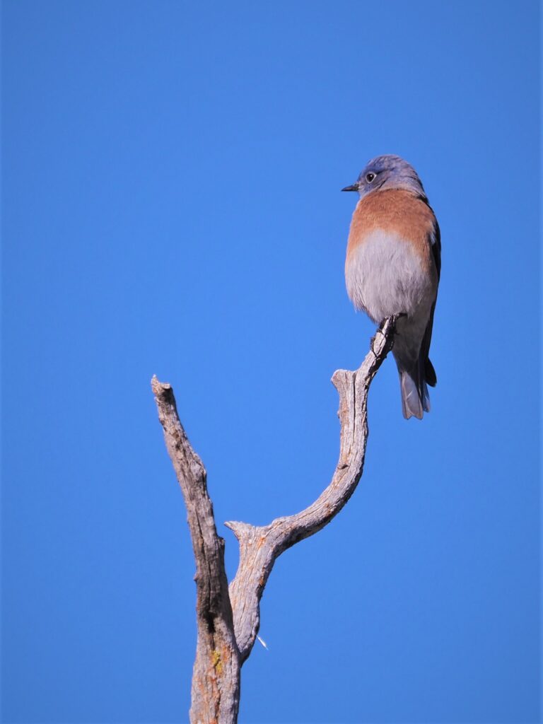 Western bluebirds still on CR 207 1/2 mile from the dacha. Chased half heartedly by kestrel. 10-12 of them.