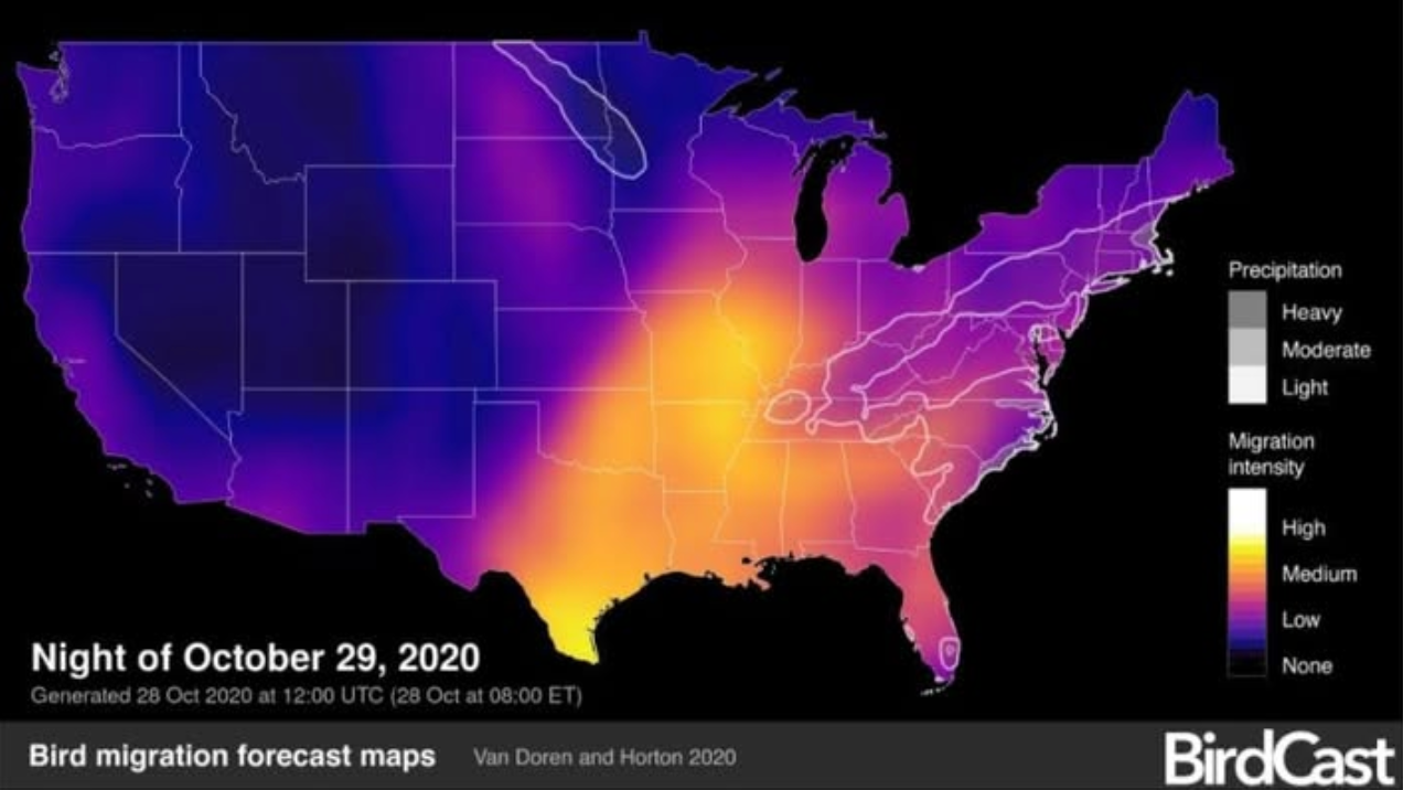 Birdcast. I should say that just because conditions are good for migration, doesn’t mean we see them on the ground. But it’s a good time to look.