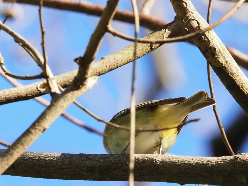 Here’s one i know u wont have trouble with. but for those of you up to the challenge, i’d like u to detail the differences between this bird seen at mills pond this morning, and others of the “solitary Vireo complex”. (actually I think this is 2 individuals, same species).
