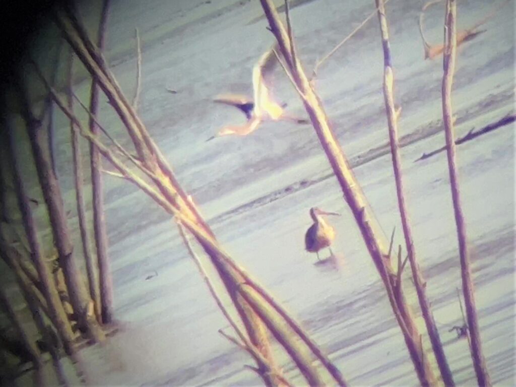 Conditions look pretty good there for shorebirds. I had 5 flocks of peeps fly by, but only able to scope 2 groups that landed.
