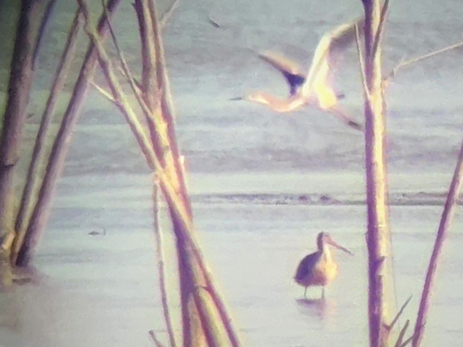 Conditions look pretty good there for shorebirds. I had 5 flocks of peeps fly by, but only able to scope 2 groups that landed.