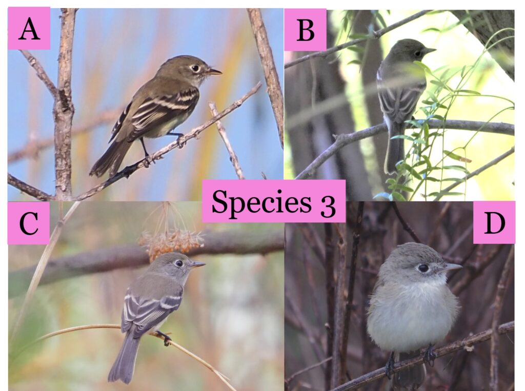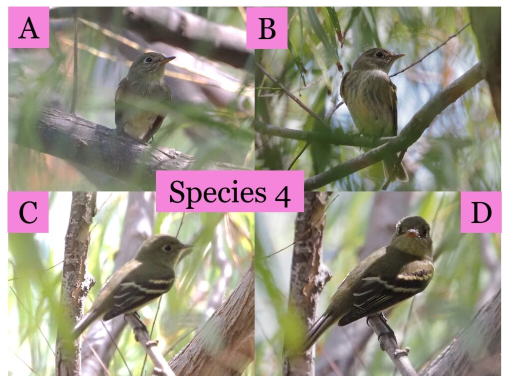 There are 4 species. Your task (should you choose to accept it) is to tell me which species and give at least 3 observations that support your species choice.