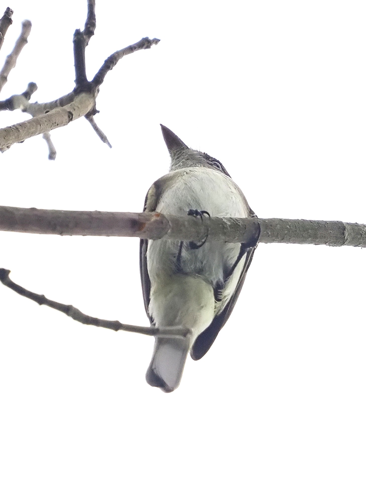 The Traill’s has a moderate primary projection and as such this attribute may not be conclusive on its own, but can be a useful clue. The Traill’s primary projection can be said to be definitely longer than the Least, but generally shorter than the Acadian. The primary projection of the Yellow-bellied is also moderate, and sometimes even long. The primary projection of all Eastern Empids are shown in the next group of photos.