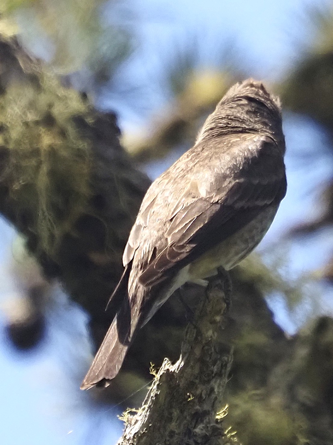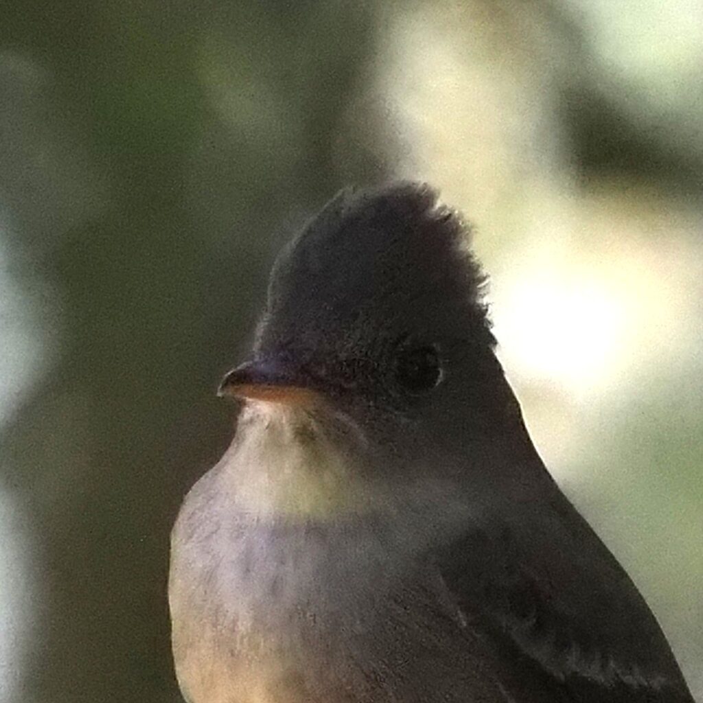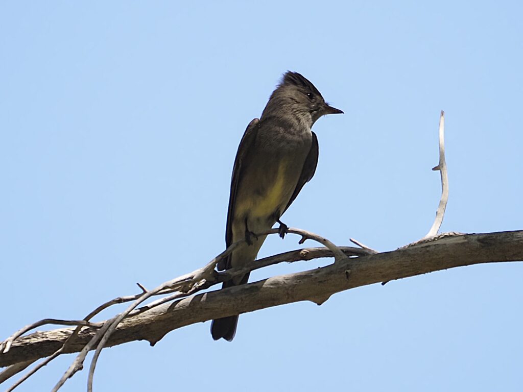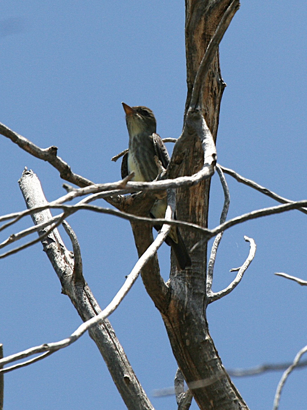 Pewees rarely flick their tail as many Empids do. They are also famous for returning repeatedly to the same perch while fly catching. Pewees often, but not always, have a faint to emphatic vested-look. All of the contopus can show a crested-look, but be aware that the crest can be raised or lowered as shown below.