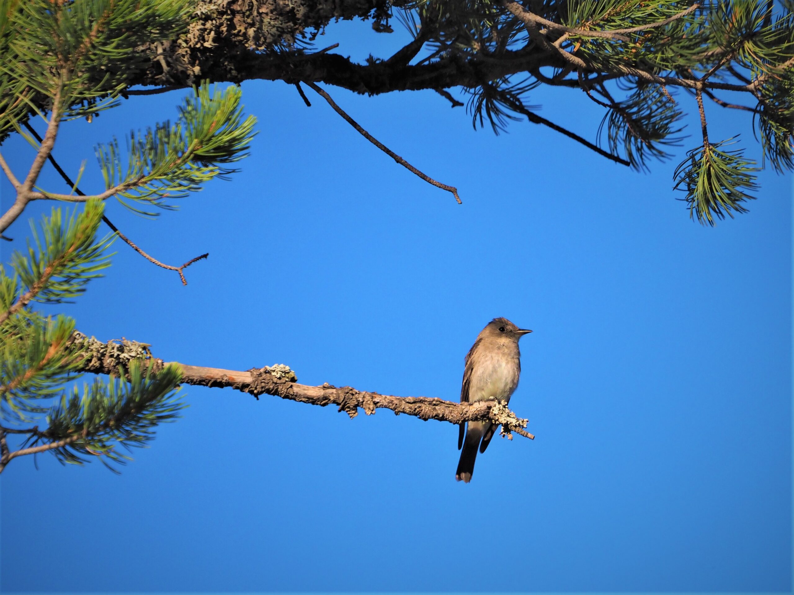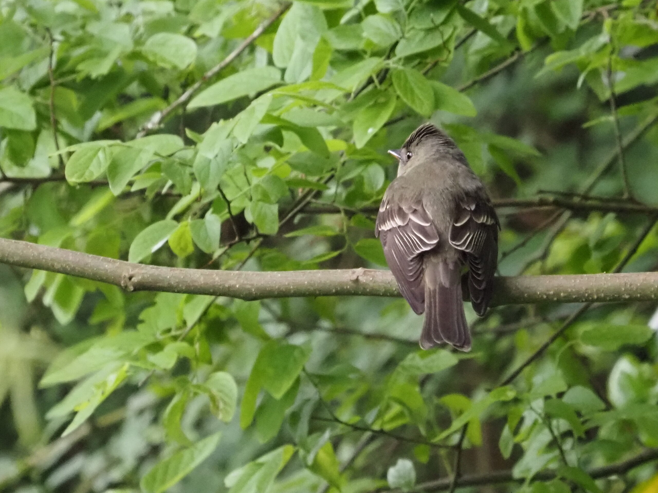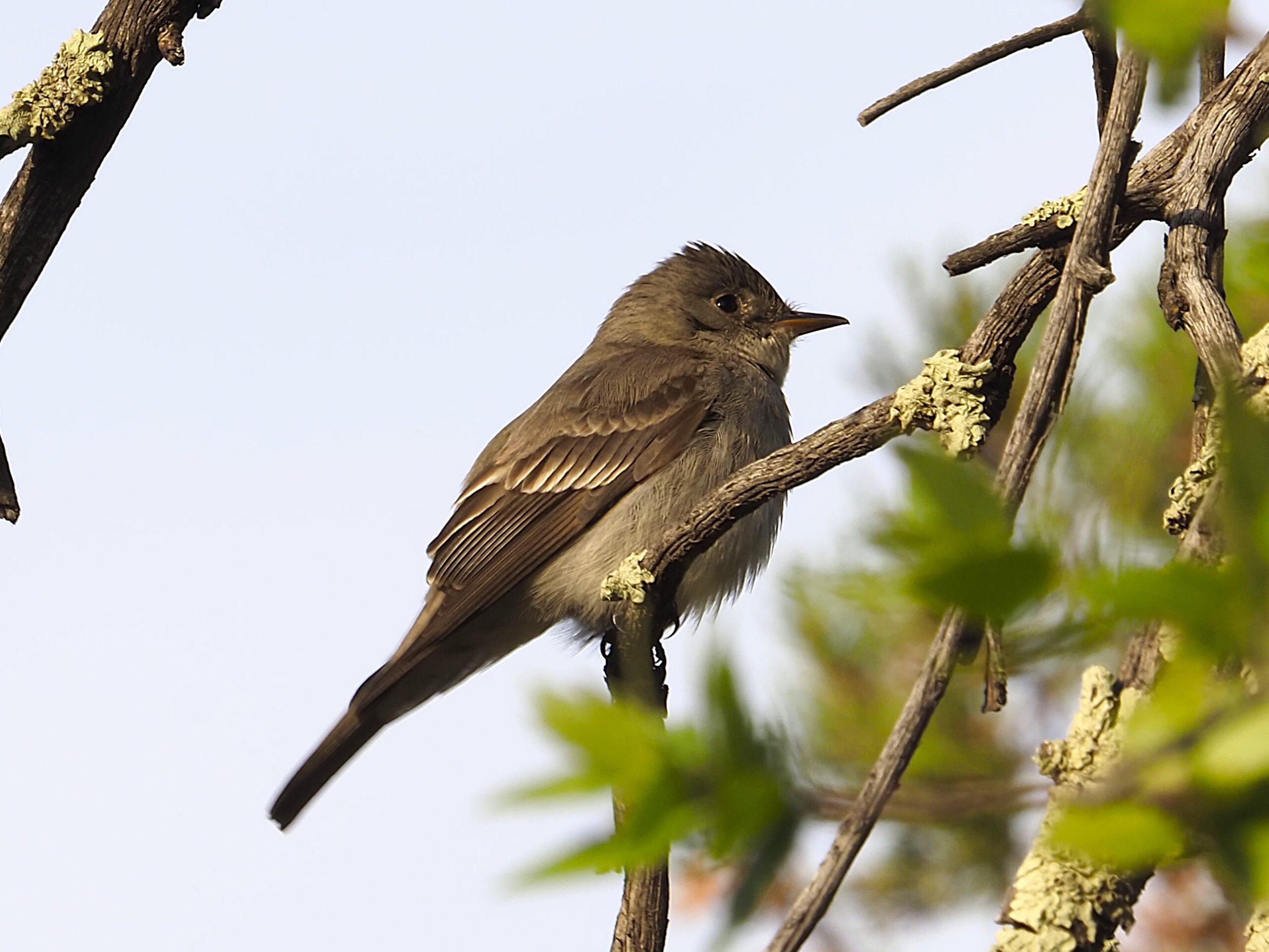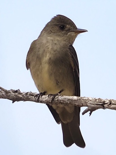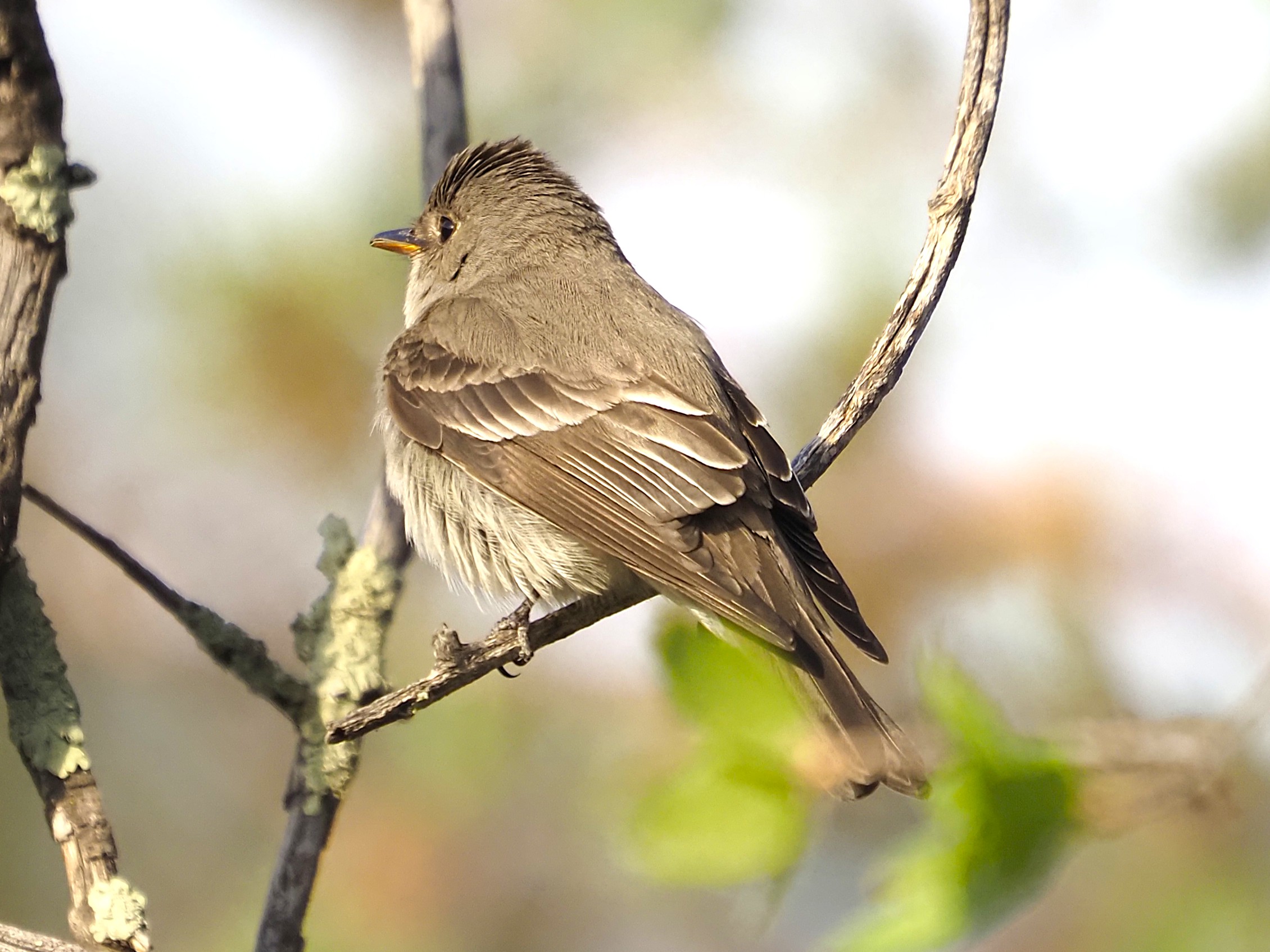 Pewees rarely flick their tail as many Empids do. They are also famous for returning repeatedly to the same perch while fly catching. Pewees often, but not always, have a faint to emphatic vested-look. All of the contopus can show a crested-look, but be aware that the crest can be raised or lowered as shown below.