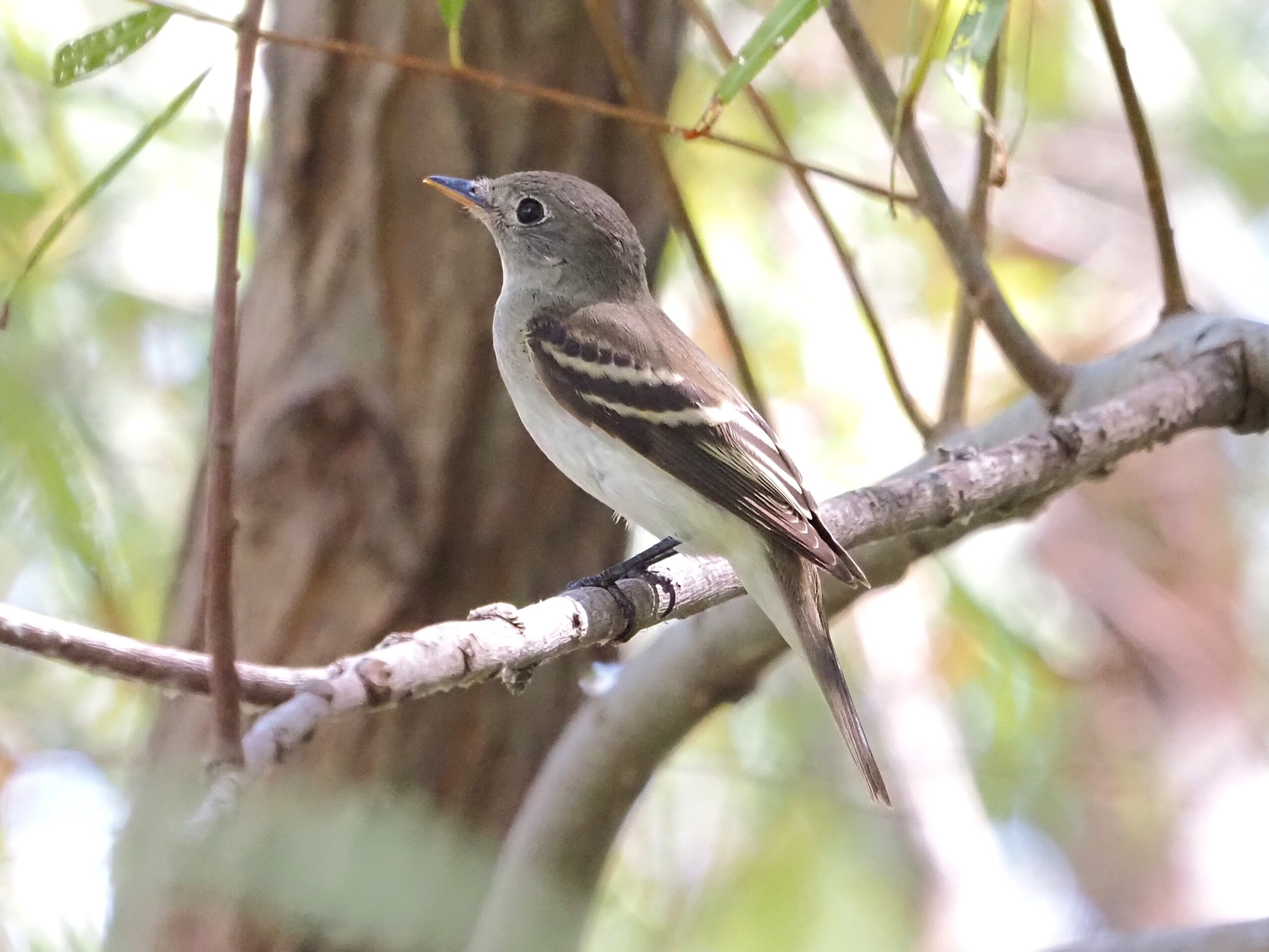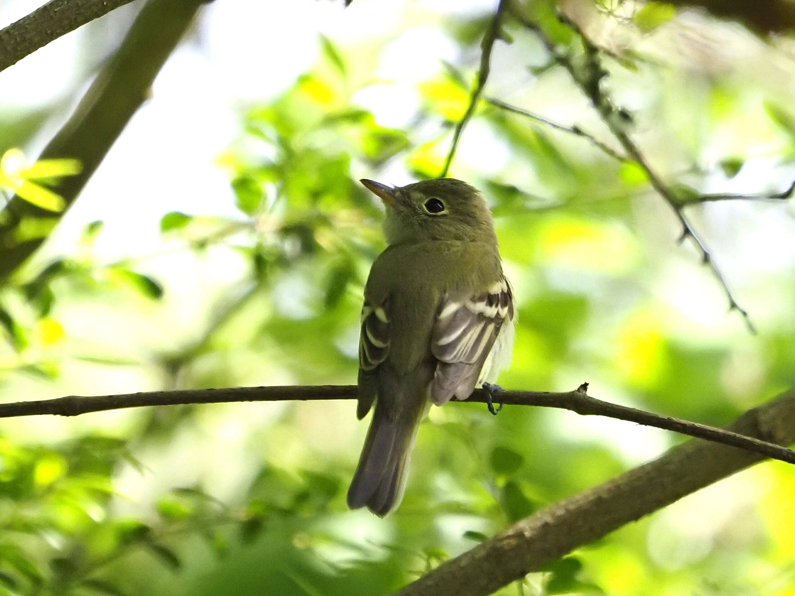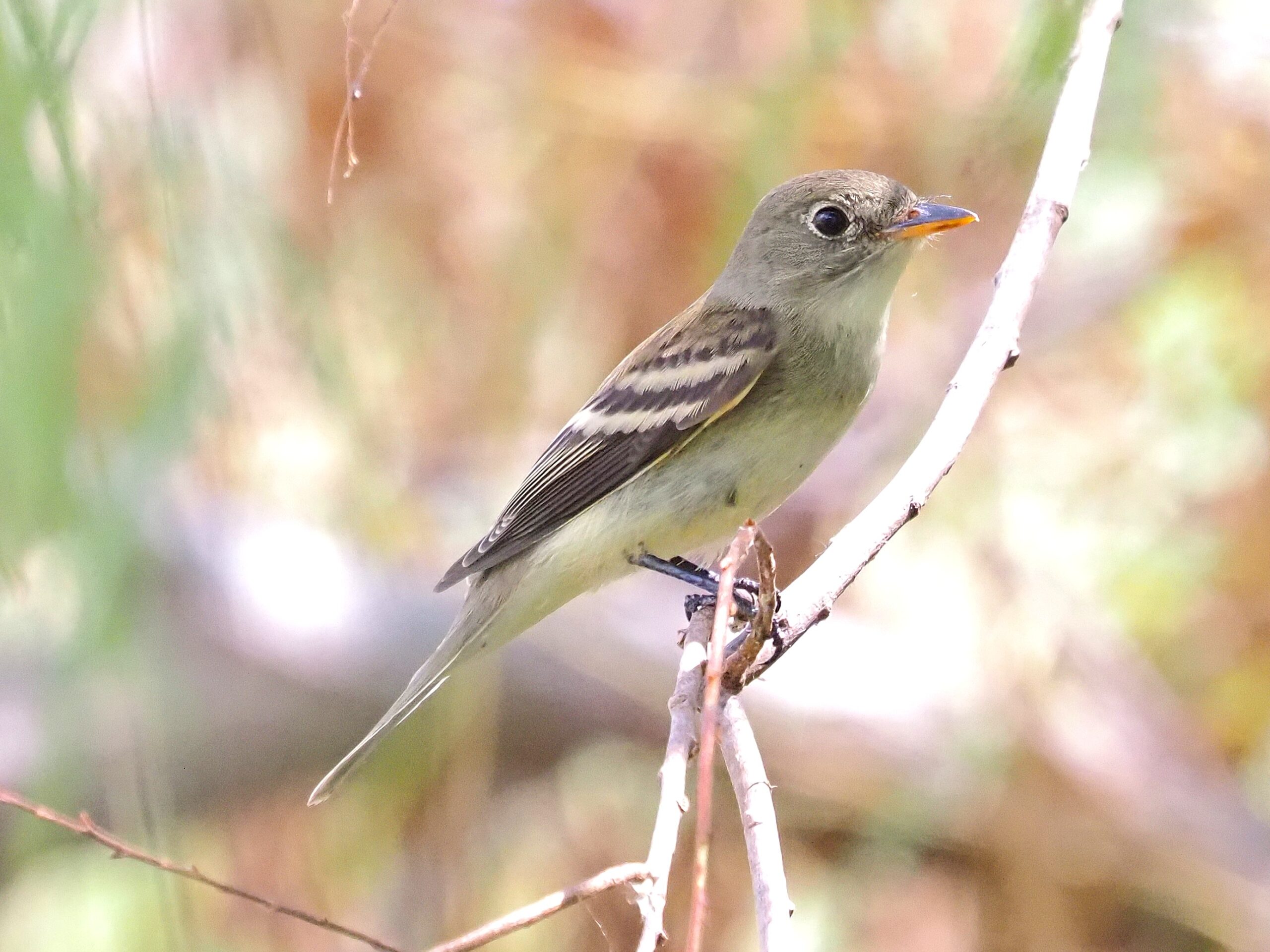 The photos in the gallery below show several of the more “pewee-like” Empid species — the Gray Flycatcher, “Trails” Flycatcher, and the Acadian Flycatcher. Note the primary projection, wing-bar and eye-ring intensity, the crest, the width of the tail, and the overall structure of Empids vs Pewees.