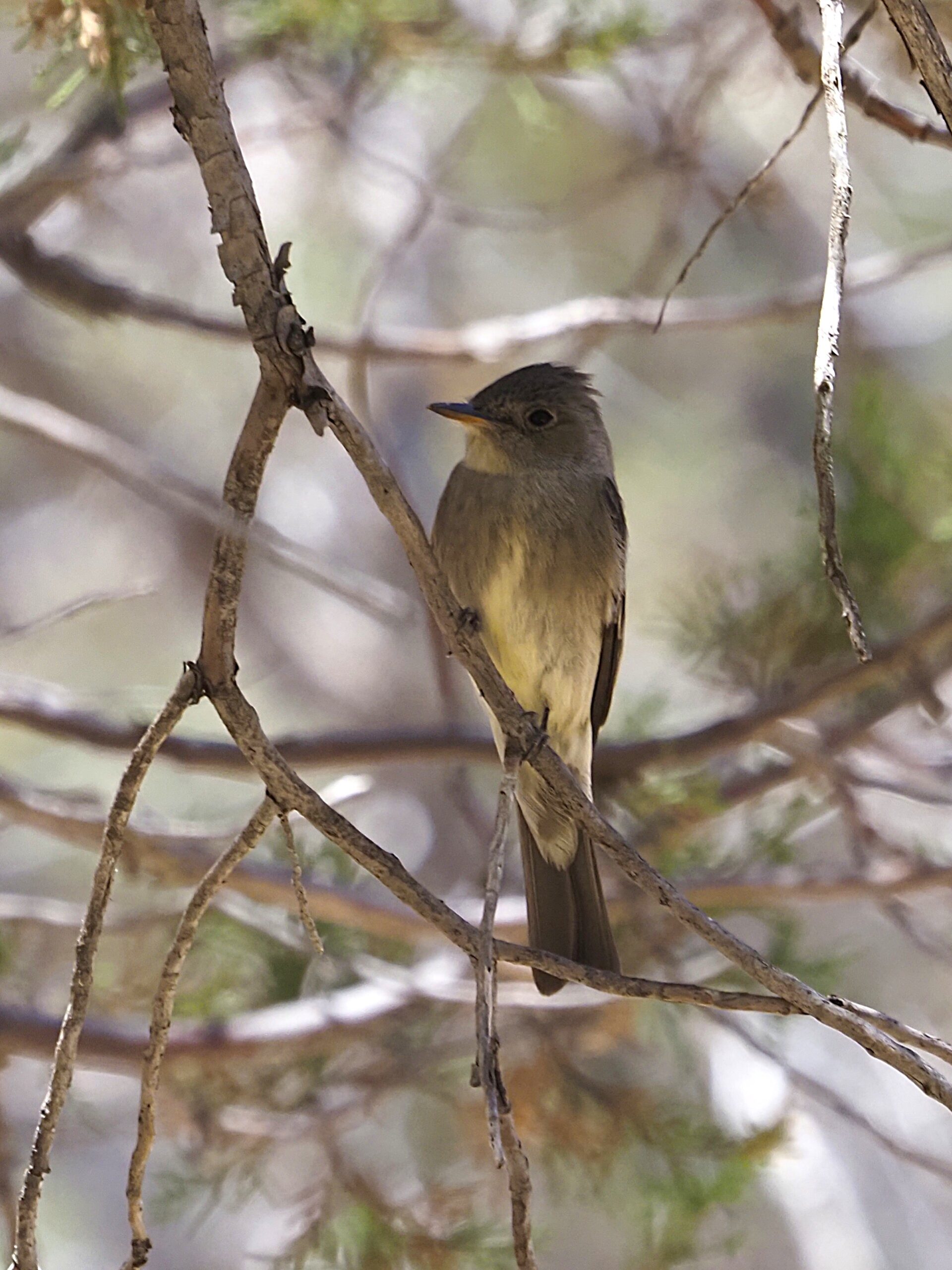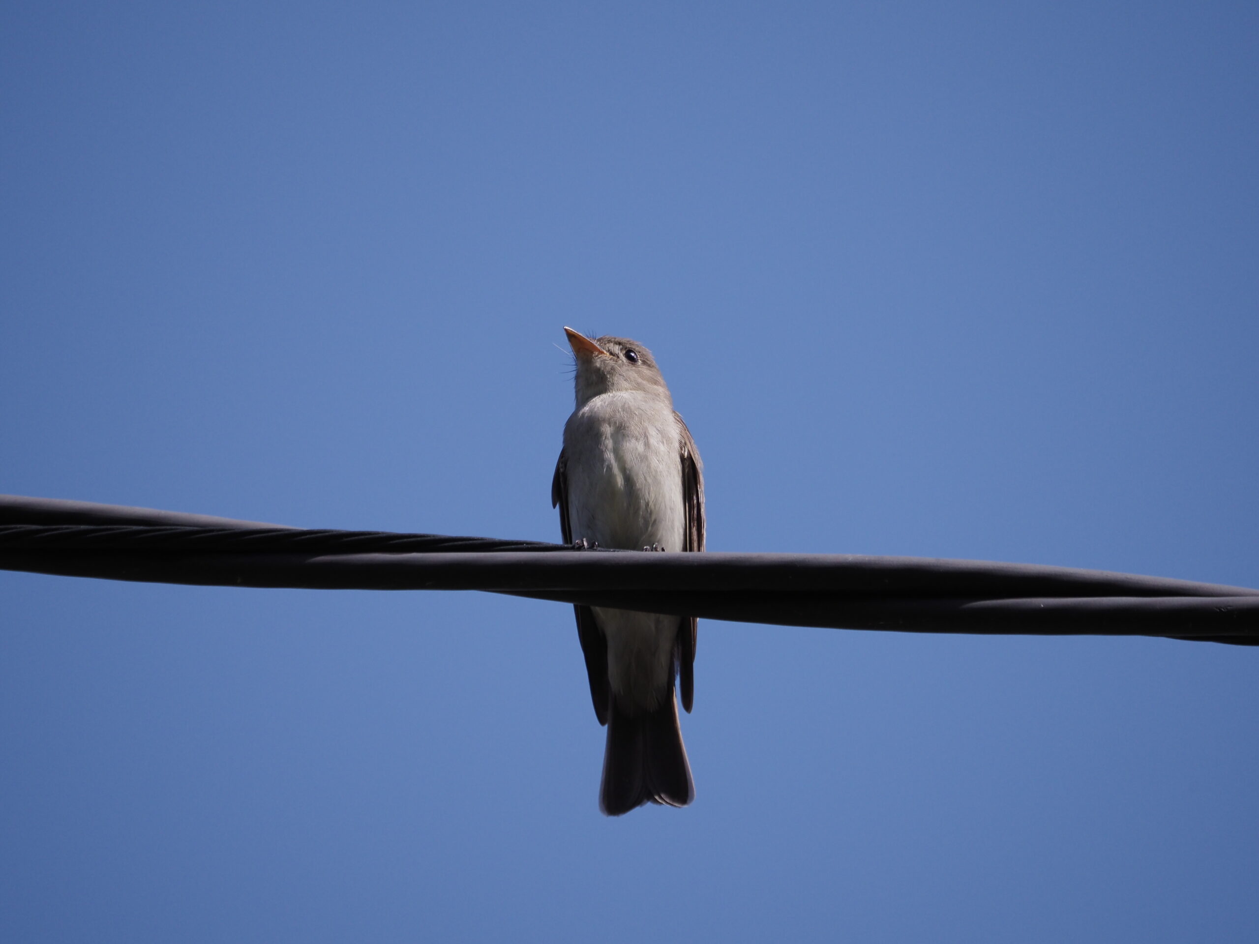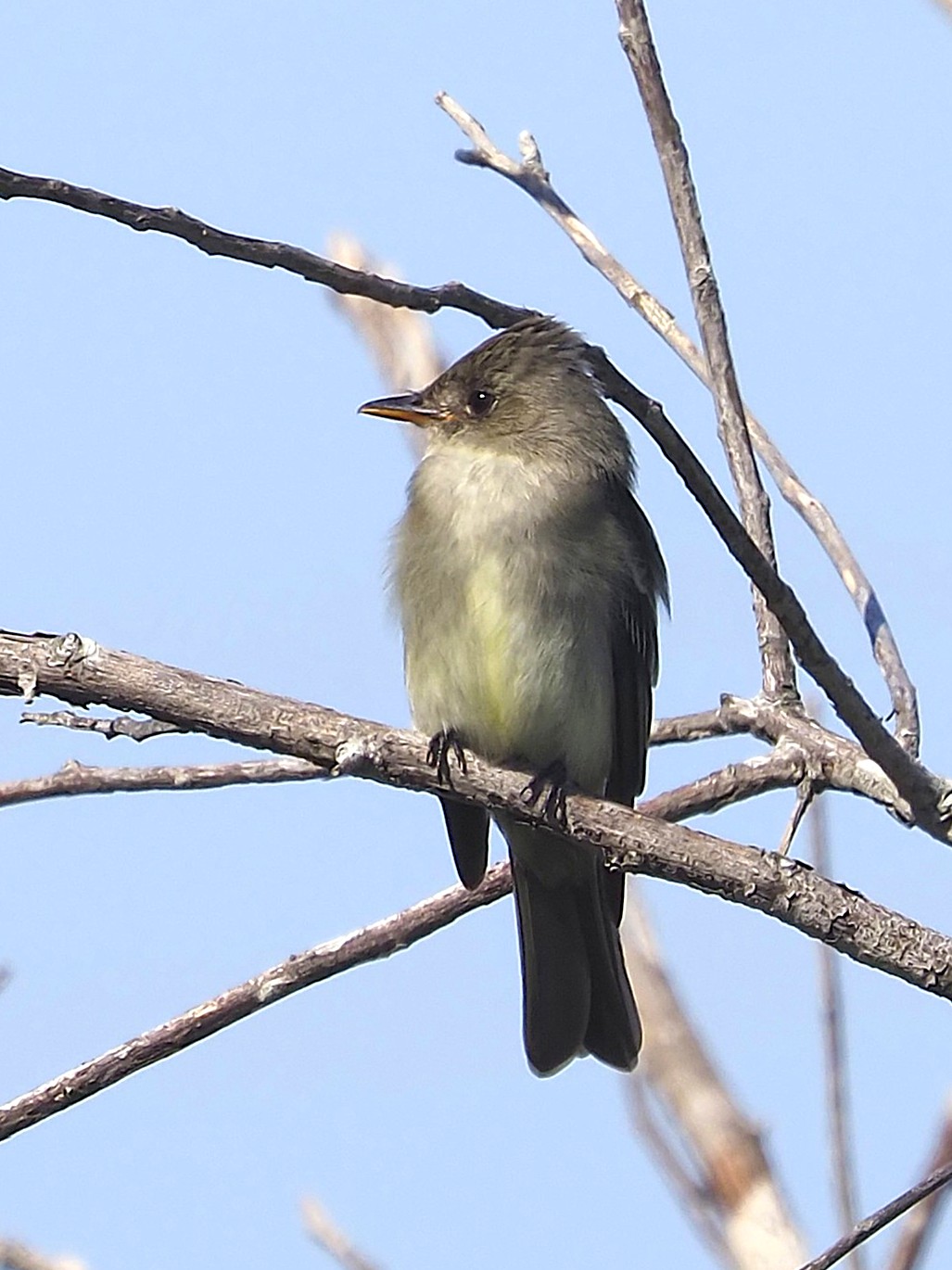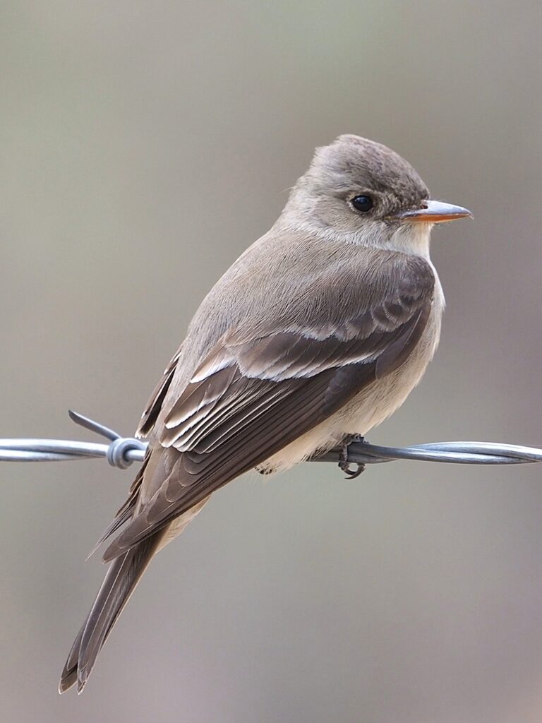 The first thing to look for with a Pewee sighting is to make sure it’s not an Empid, and the first thing to note in this regard is that Pewees have very long primary projections compared to Empids. Empids usually have more prominent wing-bars and most species have more noticeable eye-rings than Pewees. Pewees wing-bars are dull and their eye-rings are inconspicuous or non-existent. All of these points can be seen in the photos below.