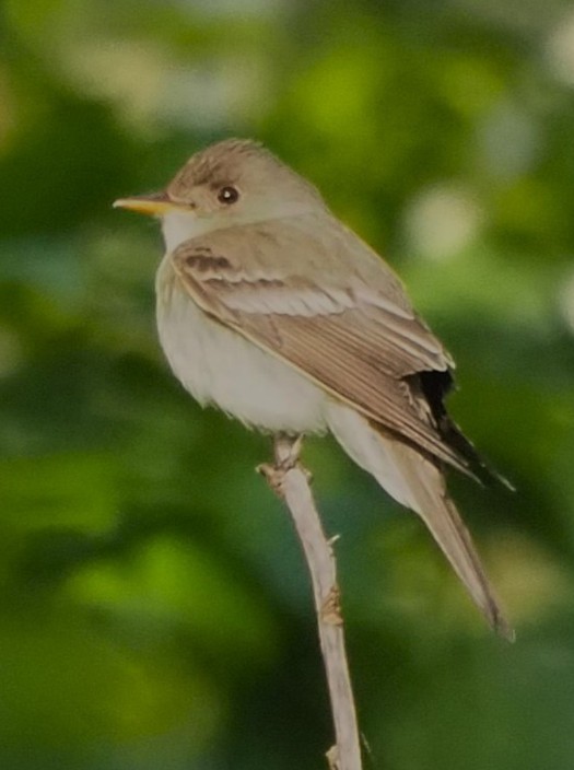 Both Wood-Pewees have dull wing-bars, however, wing-bars on the Eastern tend to be slightly brighter and are almost always of similar boldness, while the lower wing-bar is brighter than the upper on the Western.