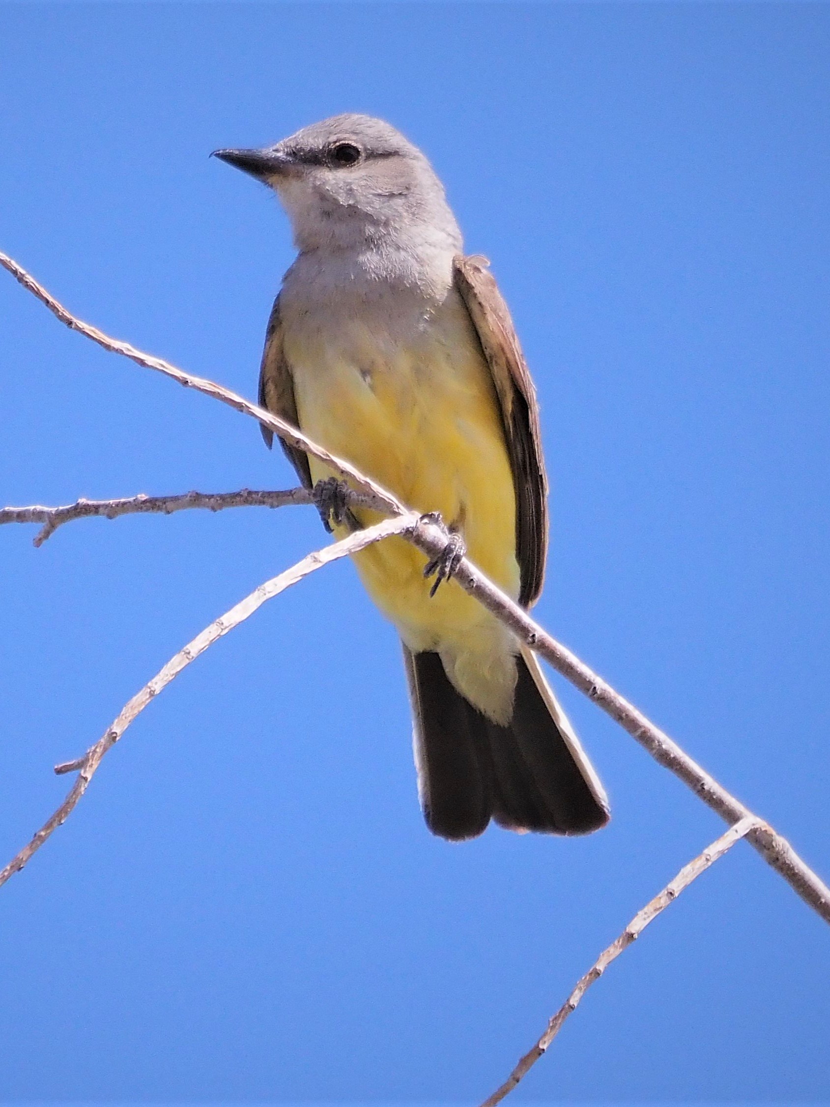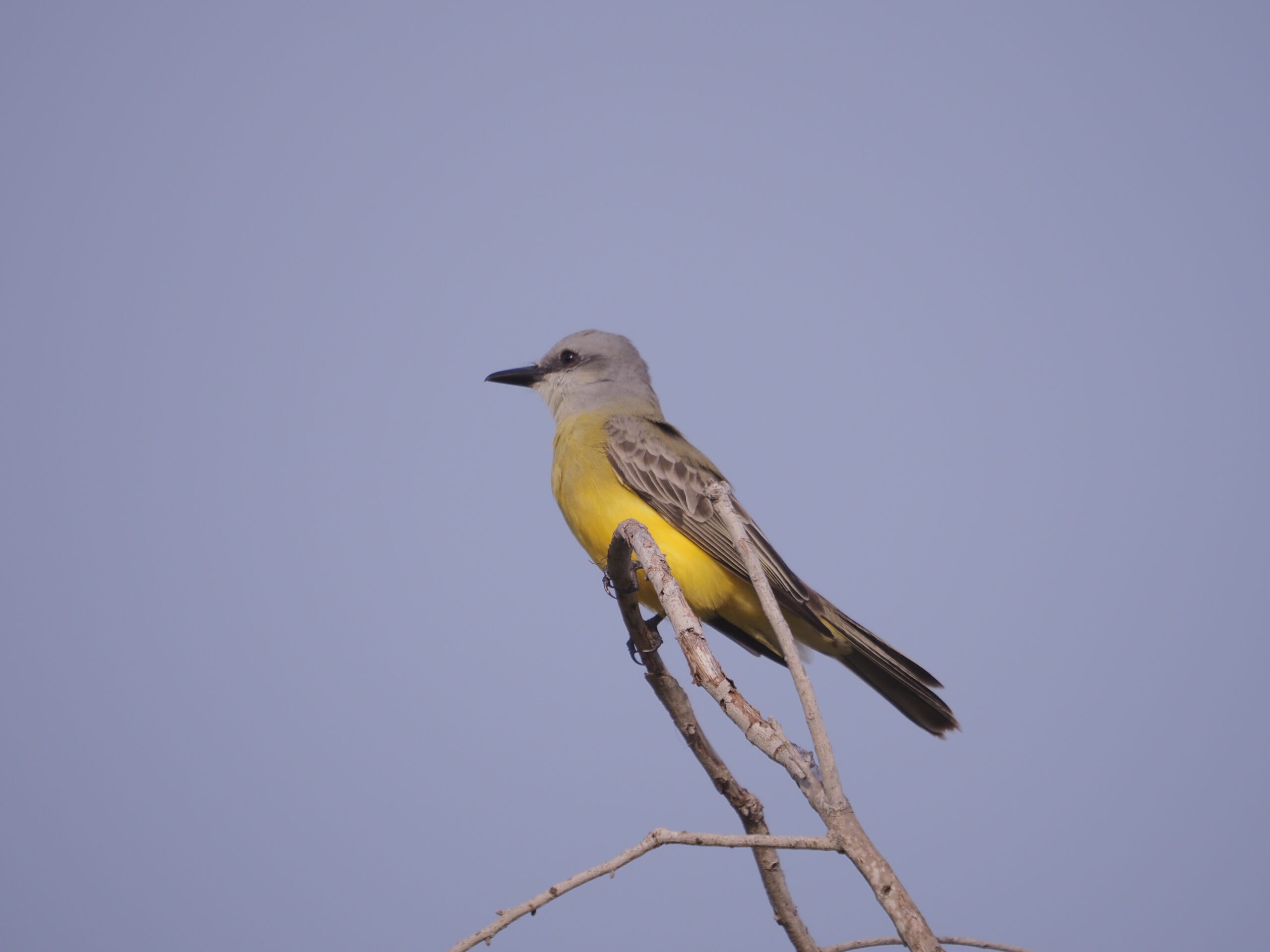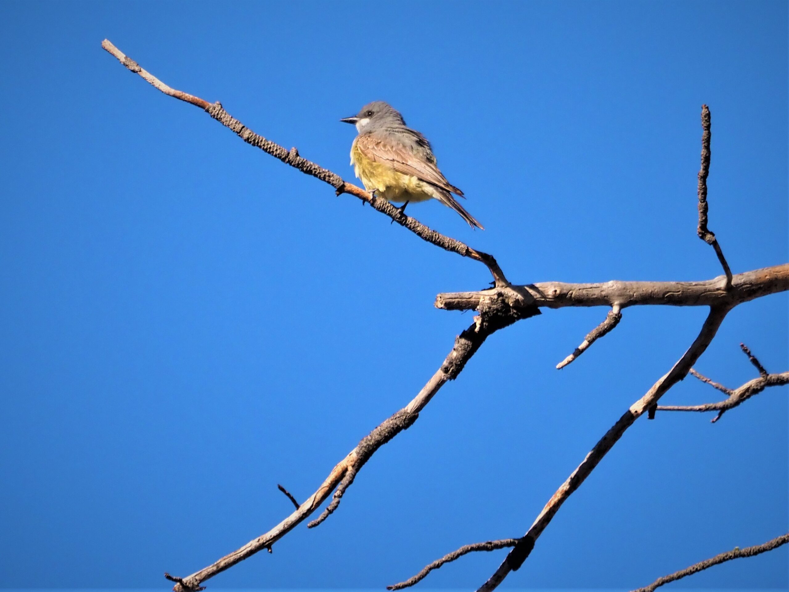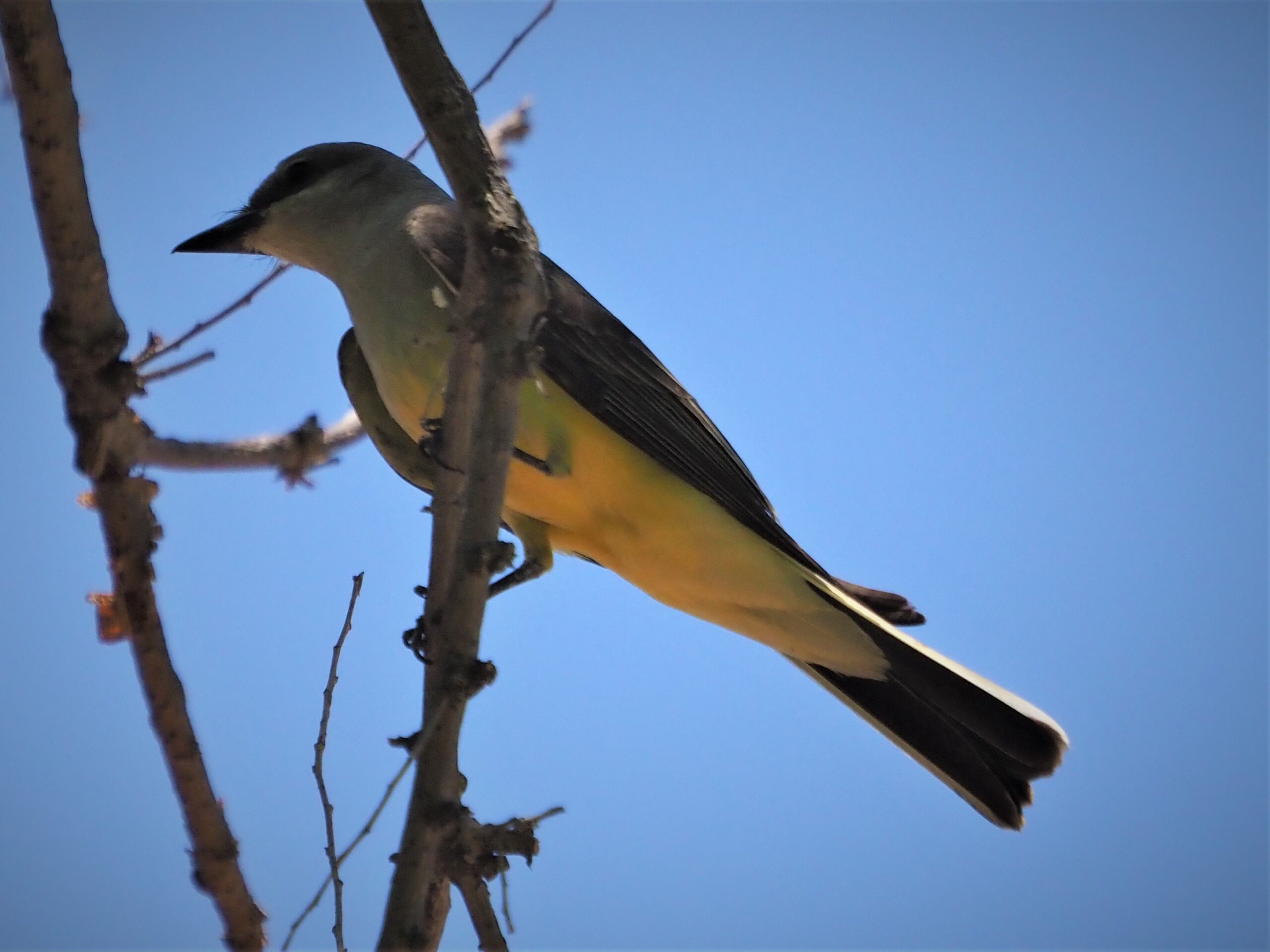 The Western is the most common and widespread of the yellow-bellied kingbirds. In comparison with Couch’s & Tropical, the Western’s yellow can be less-vivid and is restricted to lower on the chest, whereas in the other 2 species the yellow is usually brighter and comes all the way up to the neck.