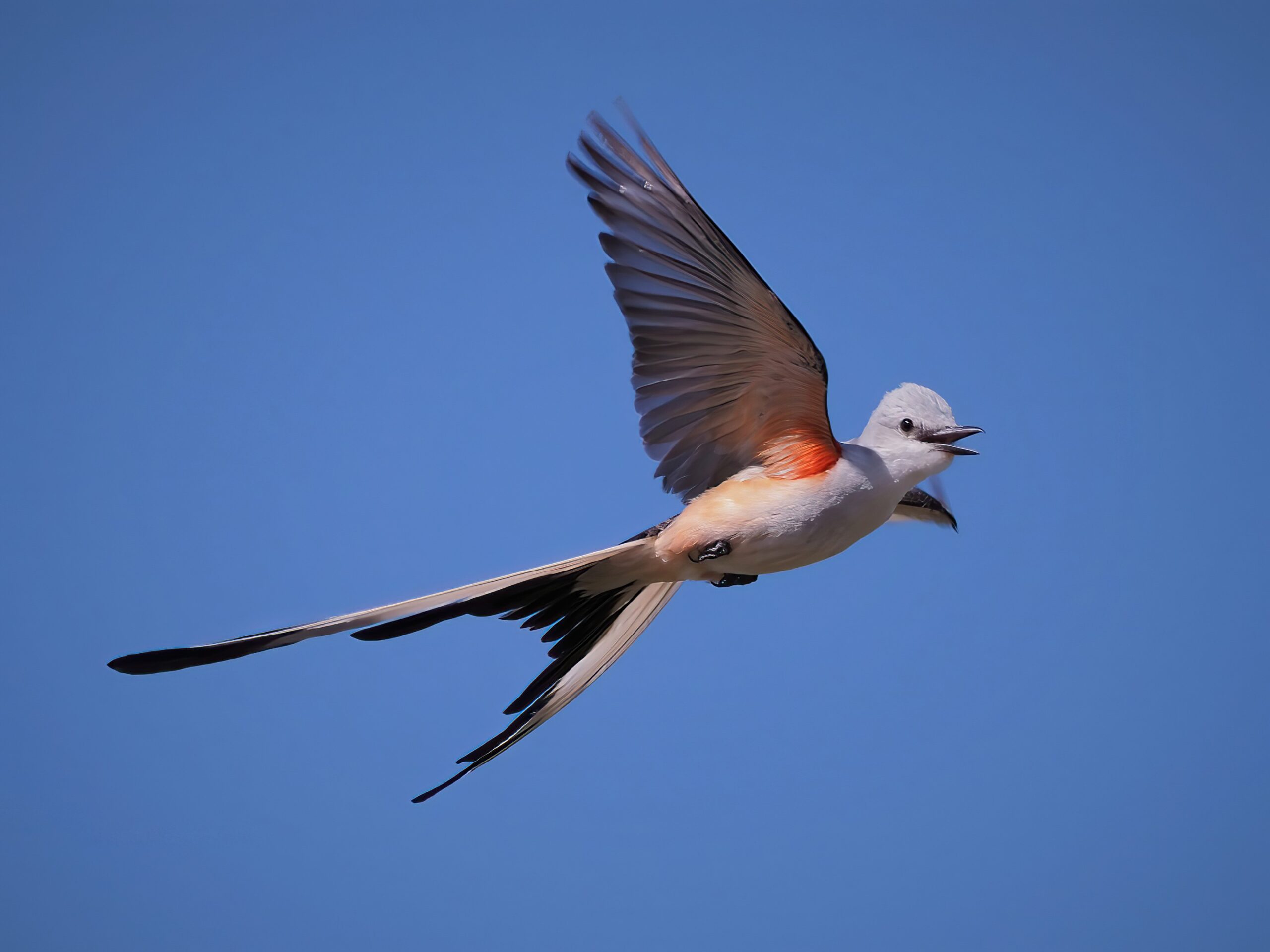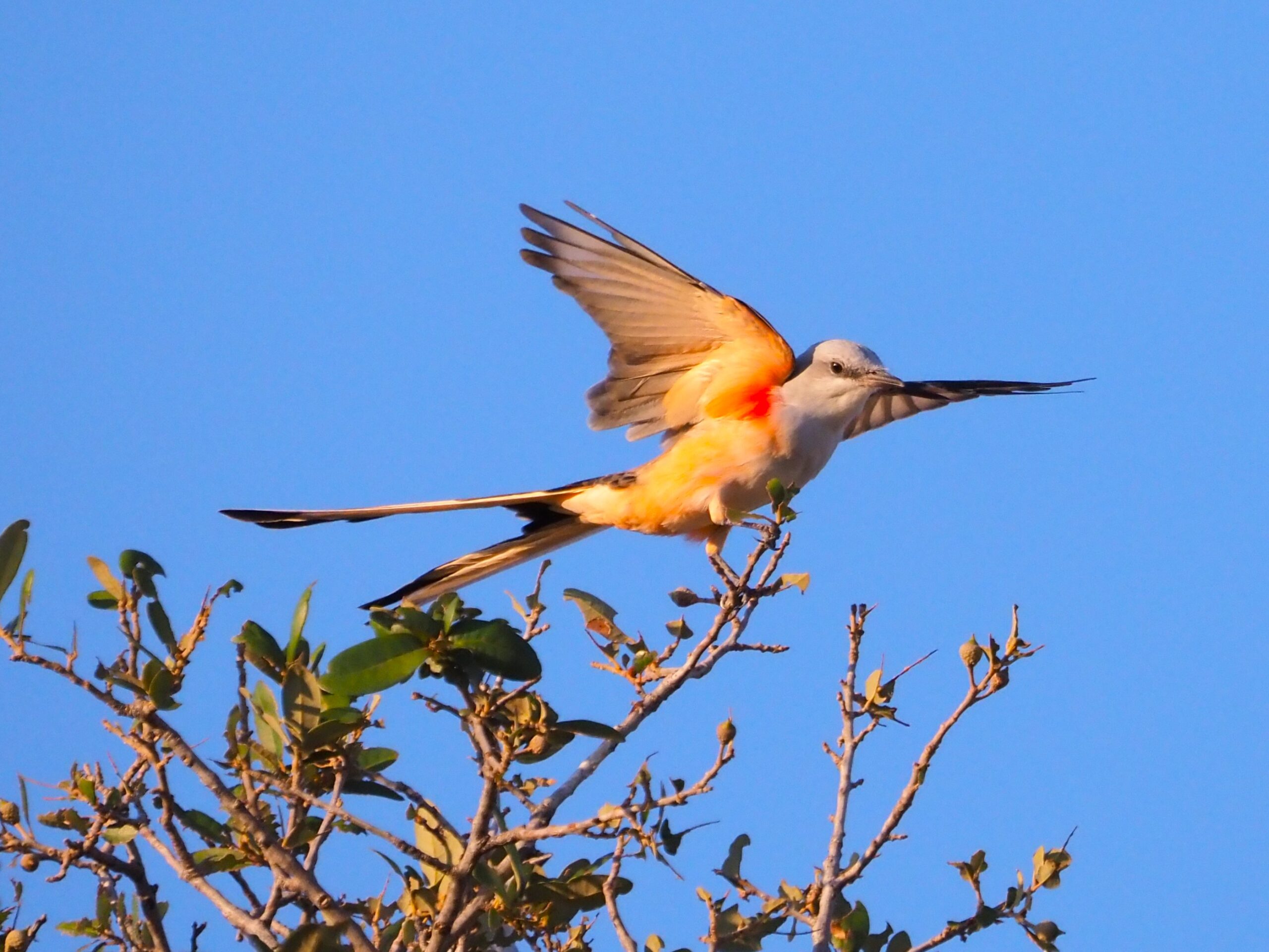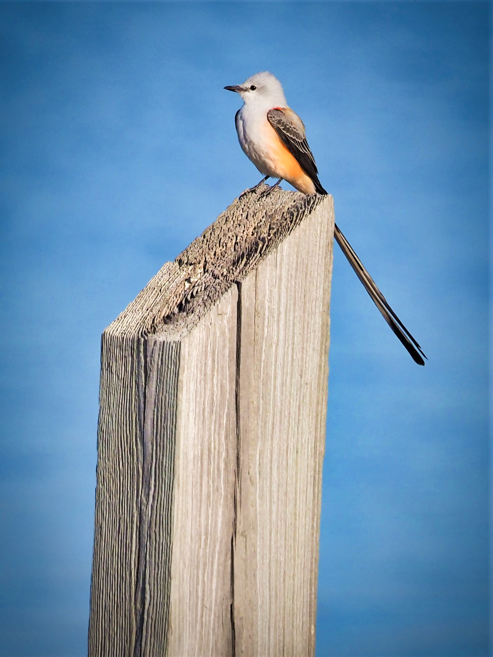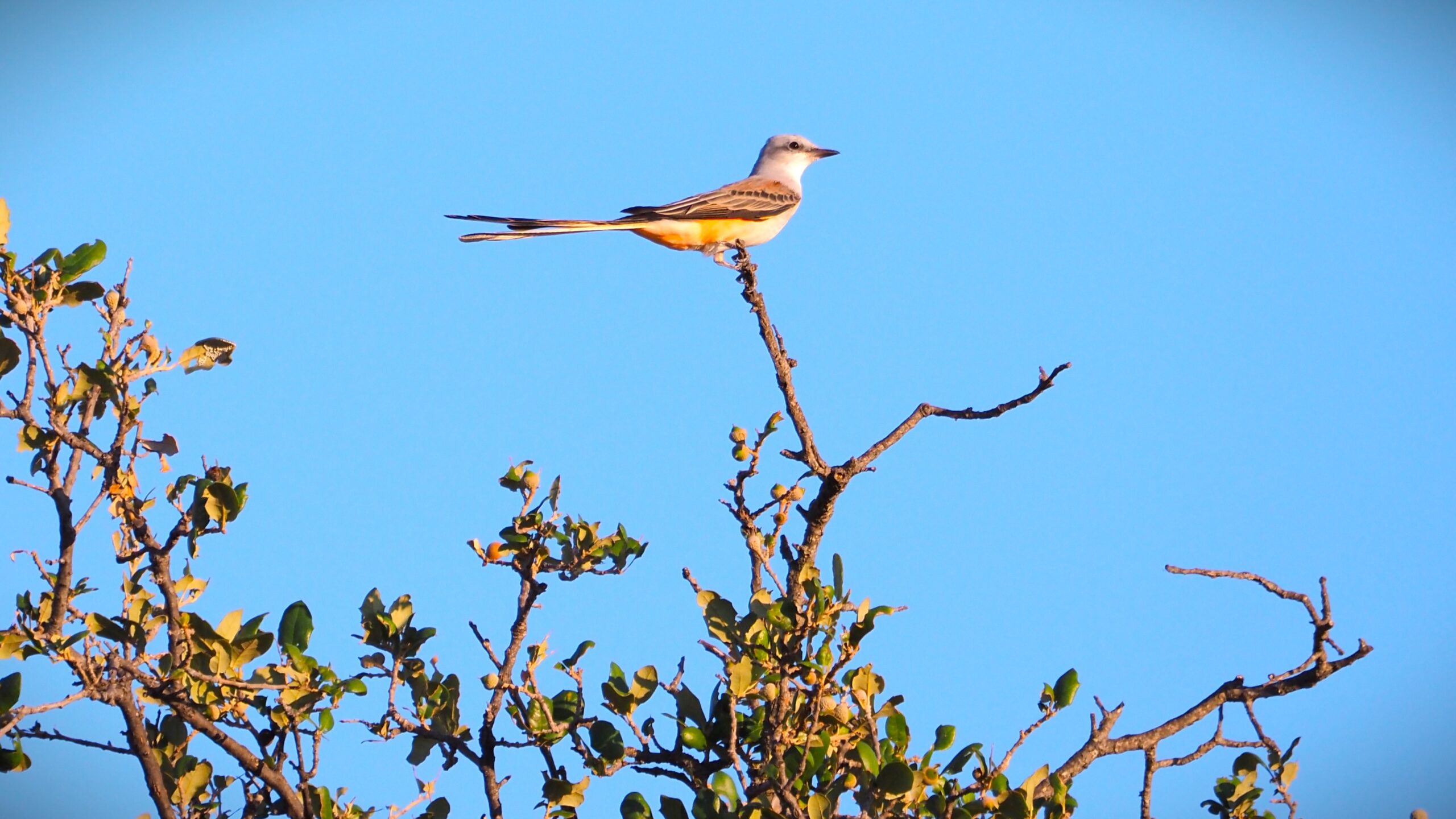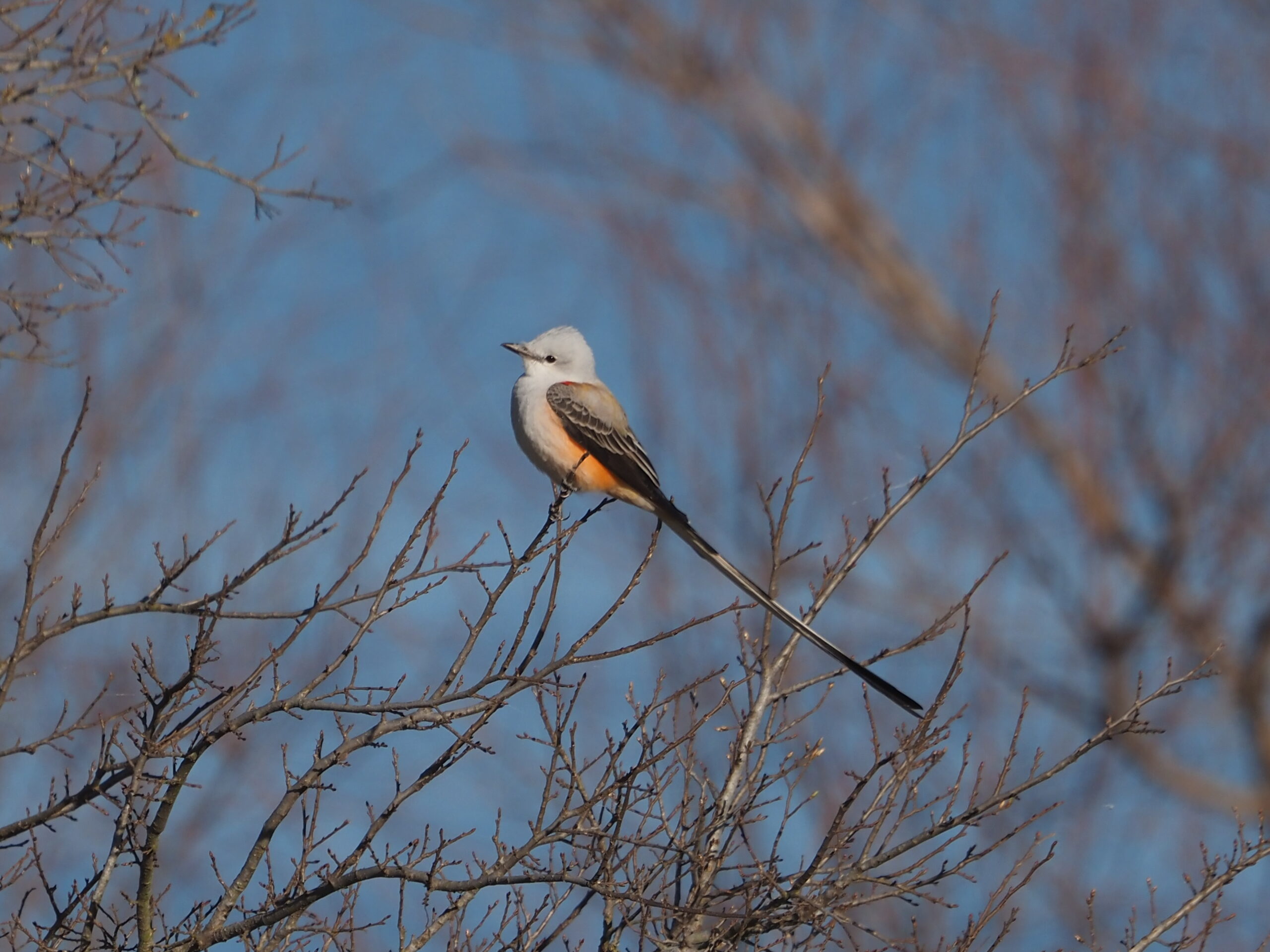 Birders should keep their eyes open for a flycatcher with a long scissor-like tail and a black head which could be a Fork-tailed Flycatcher which stray into Texas rarely but regularly — like this individual seen in Austin in 2012. There are 58 TBRC accepted records in Texas https://www.texasbirdrecordscommittee.org/texas-review-list/texas-review-list-species.