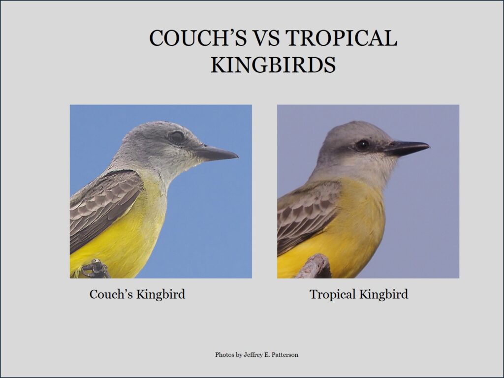 Based on the statements in Lee & Birch discussed above, bird photographers should take many photos of known Tropical and Couch’s (ideally based on vocalizations) which include: