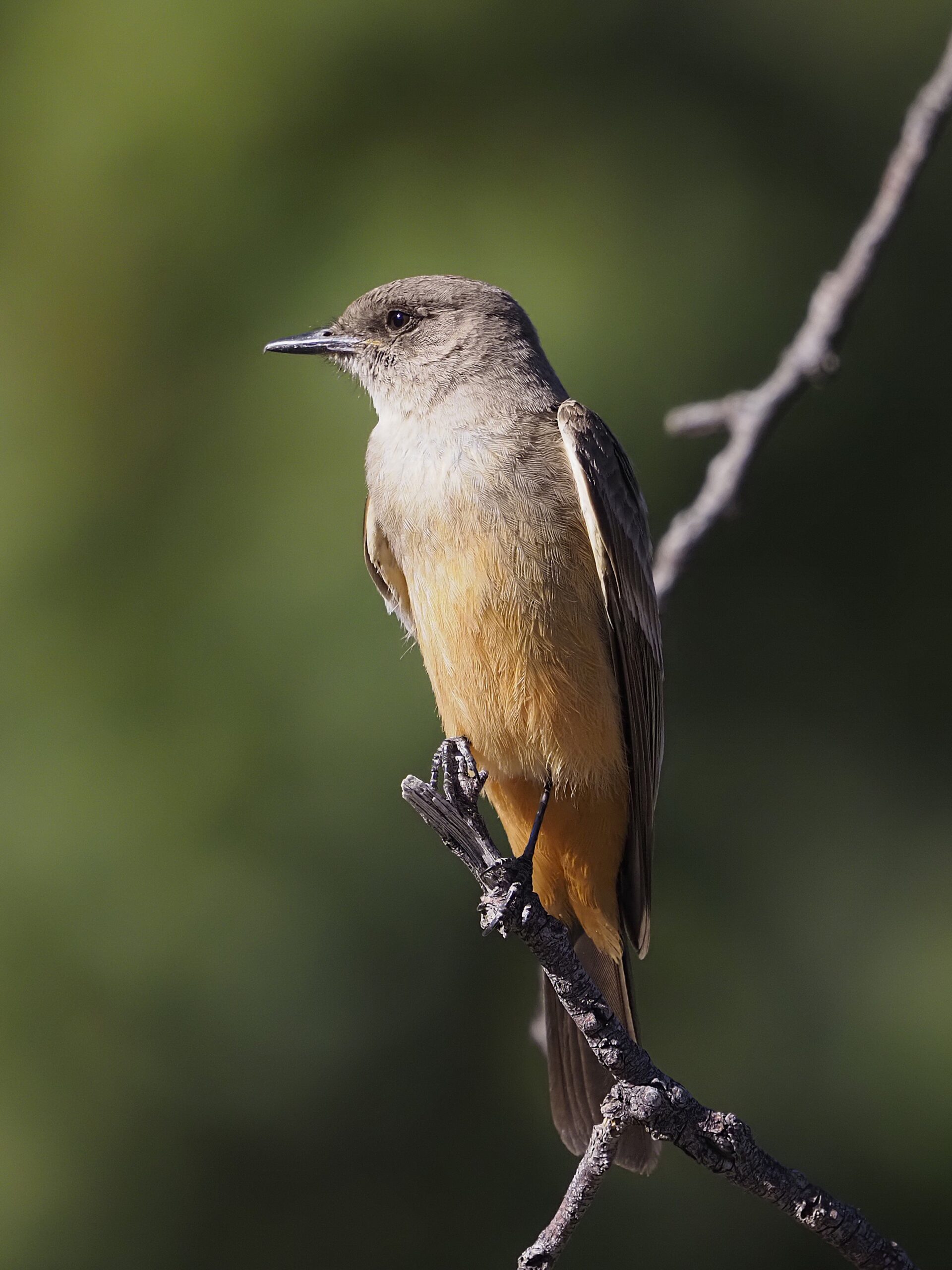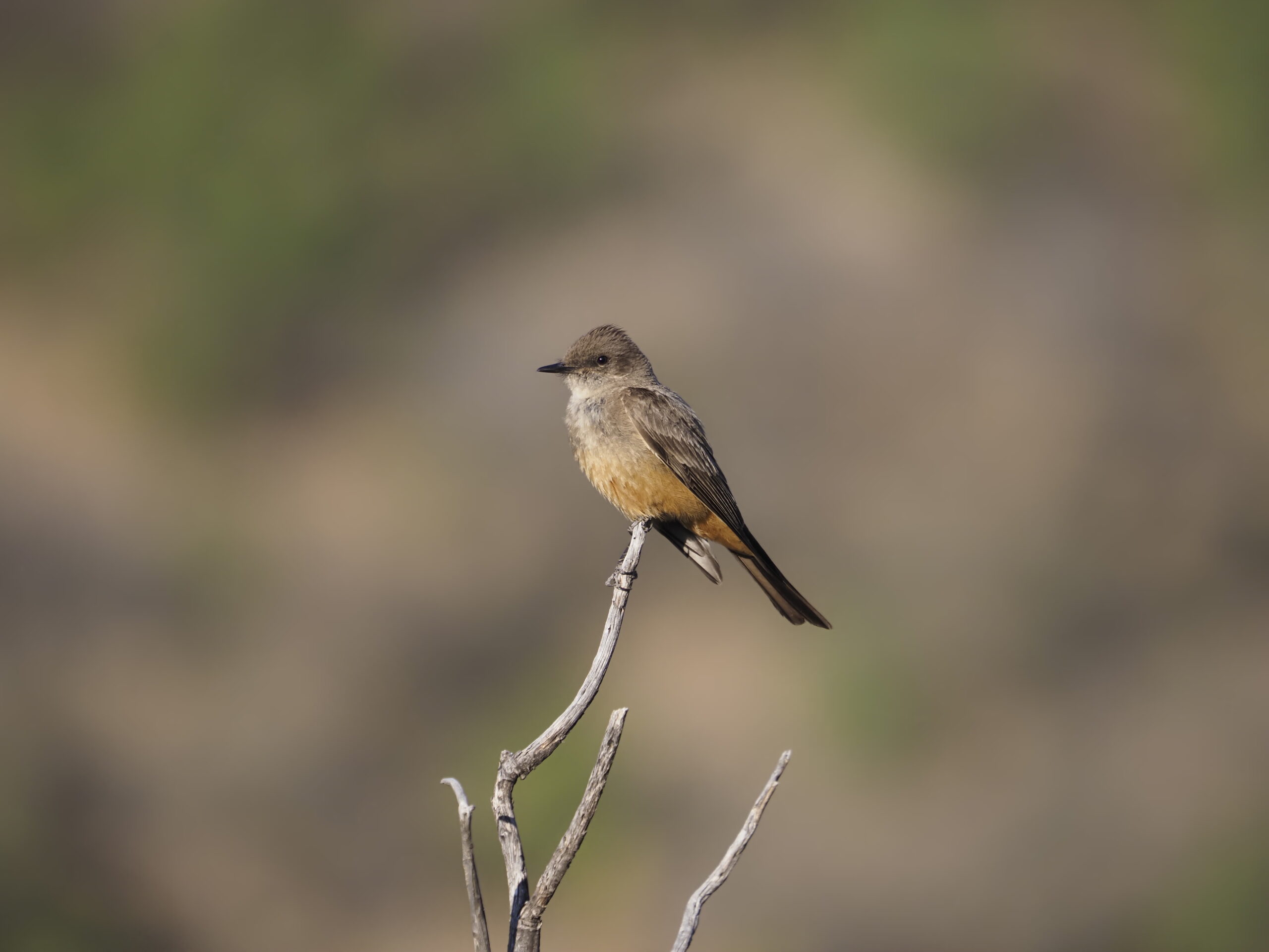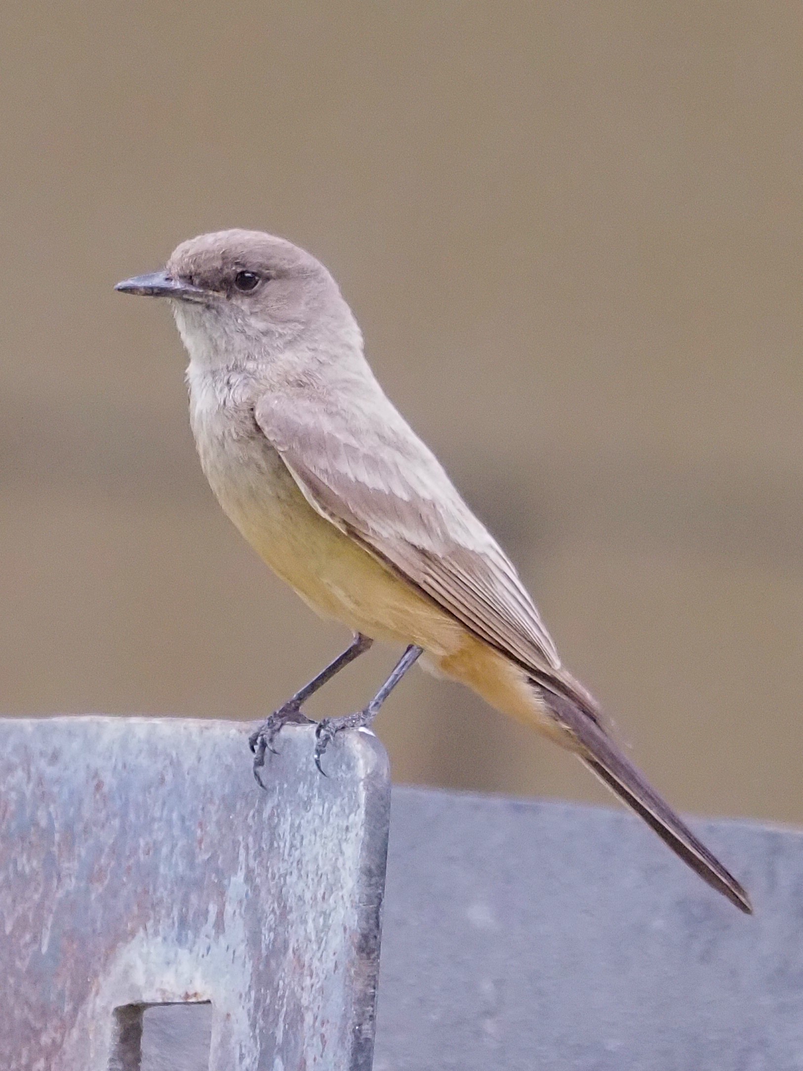 Says’s Phoebe is also a fairly easy ID. It is mostly a gray bird with a black tail. Its most distinguishing feature is the attractive salmon wash on the belly, vent and undertail coverts.