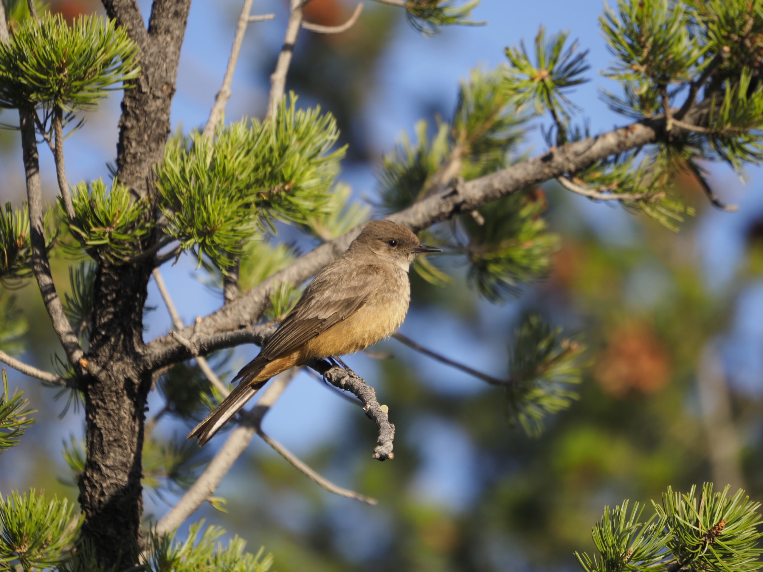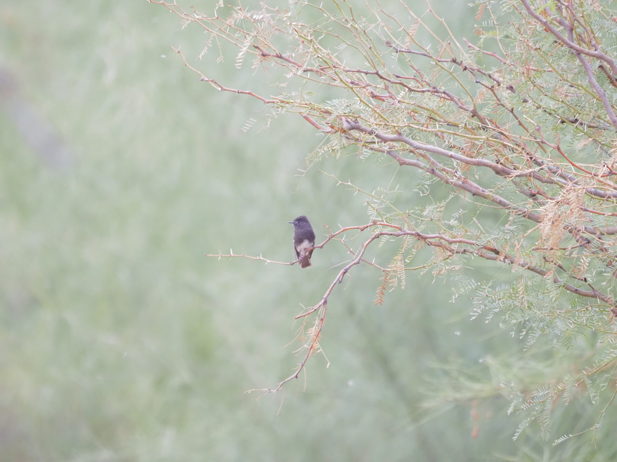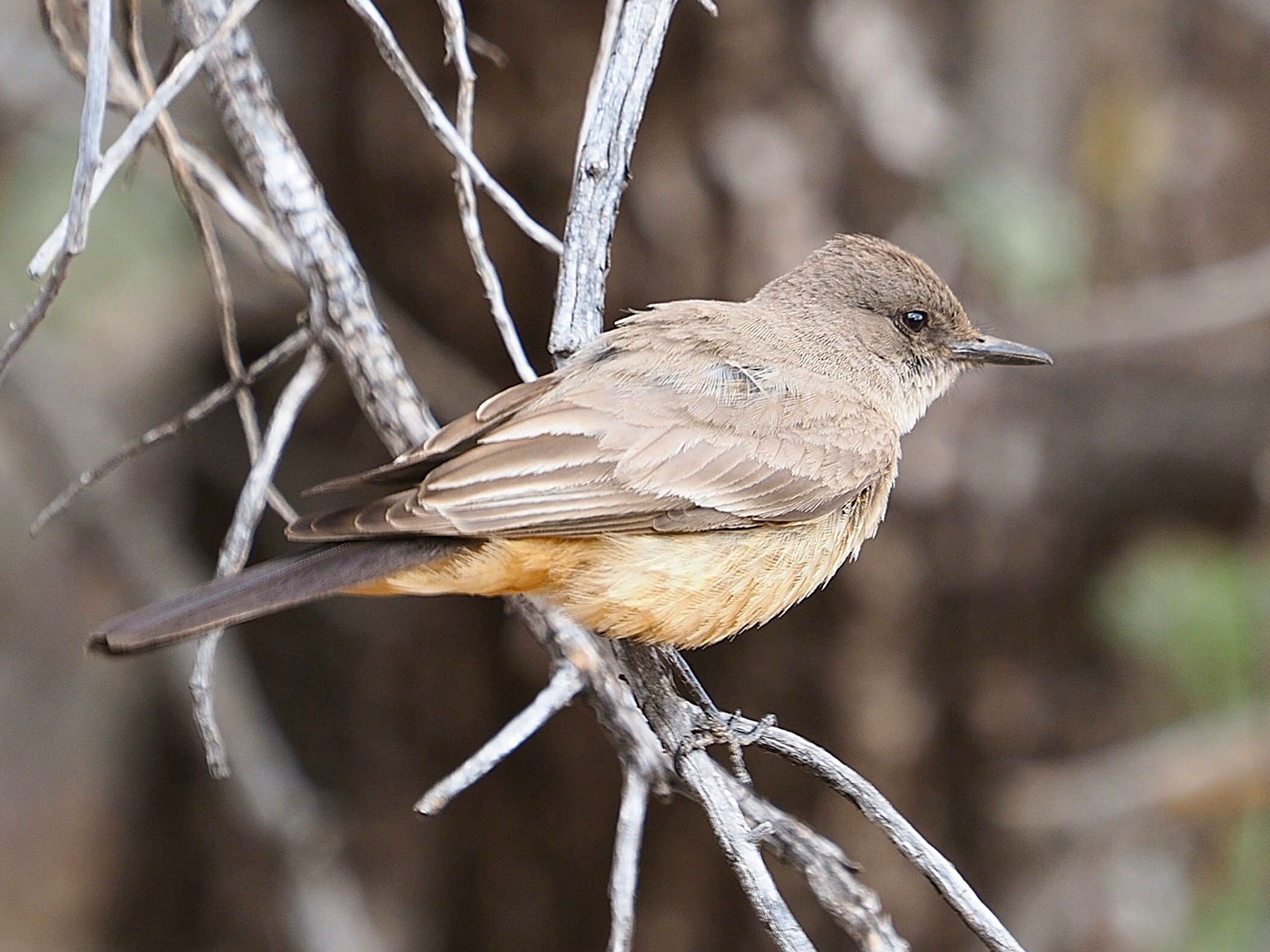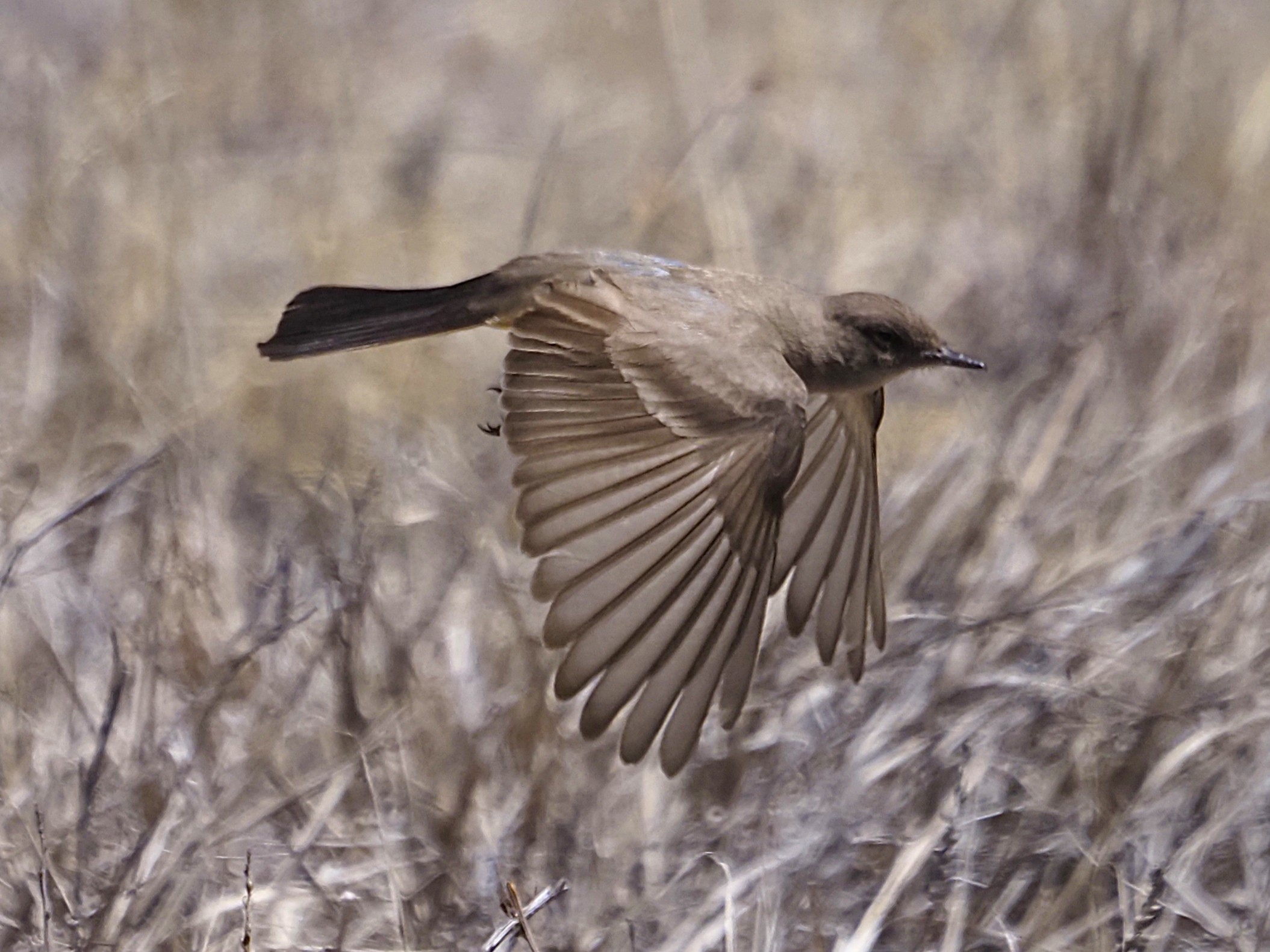 Says’s Phoebe is also a fairly easy ID. It is mostly a gray bird with a black tail. Its most distinguishing feature is the attractive salmon wash on the belly, vent and undertail coverts.