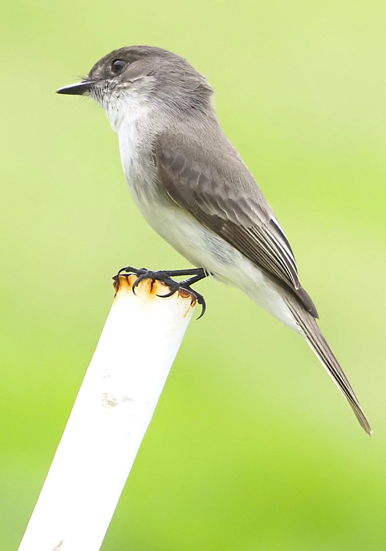 The 3 phoebes in the sayornis genus are fairly easy to identify. The Eastern Phoebe frequents open woodland and park-like habitats, while the Say’s Phoebe is a bird of open western areas and the Black Phoebe prefers dry southwestern areas near a water source.