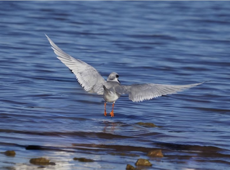 Gull #7 Forster’s tern (I know – a mean trick as I called it “Gull #7”). Orangey legs, very pointed wing, black ear/eye patch, but back of head is not black (as in Common Tern at this time of year).