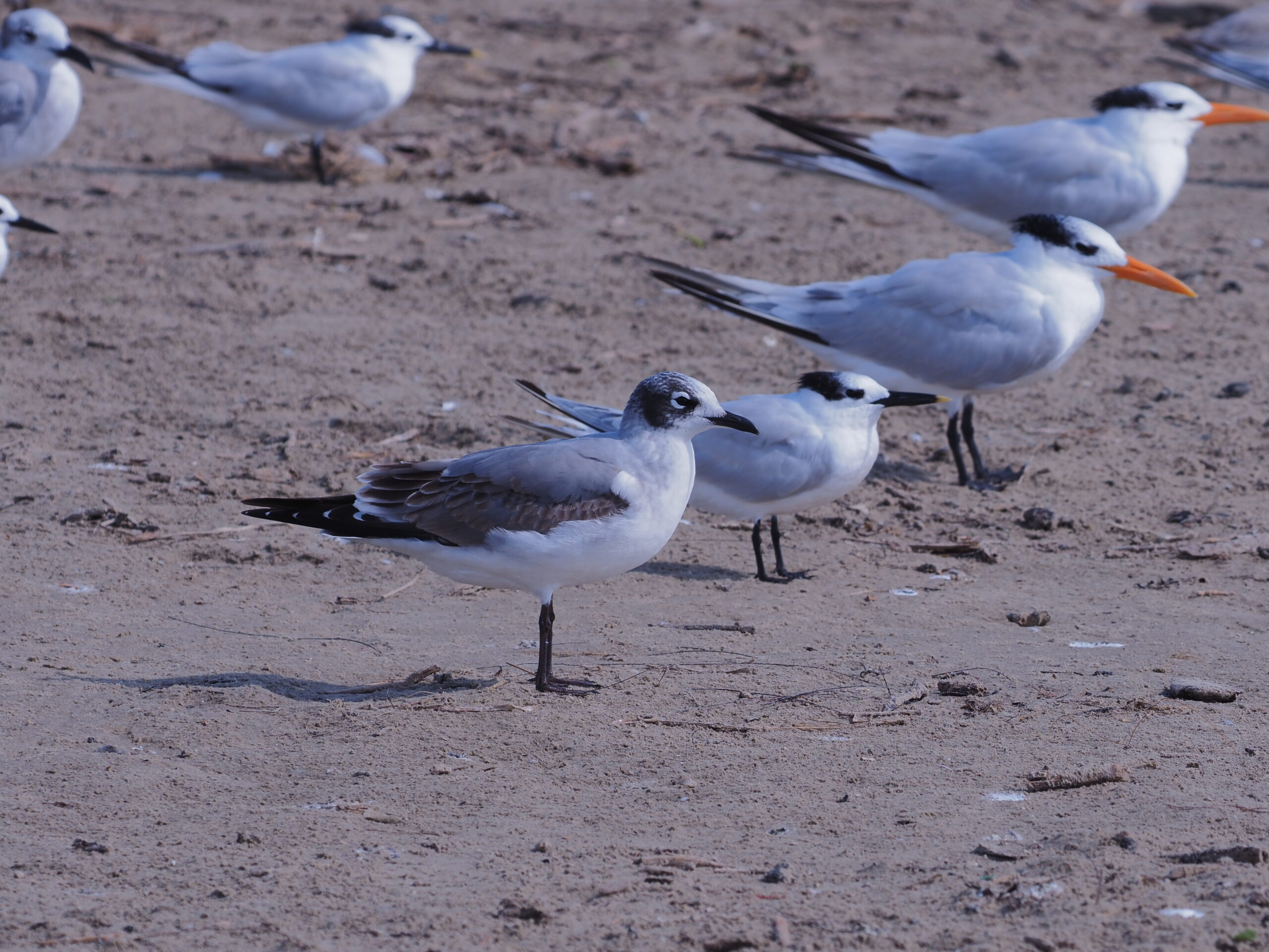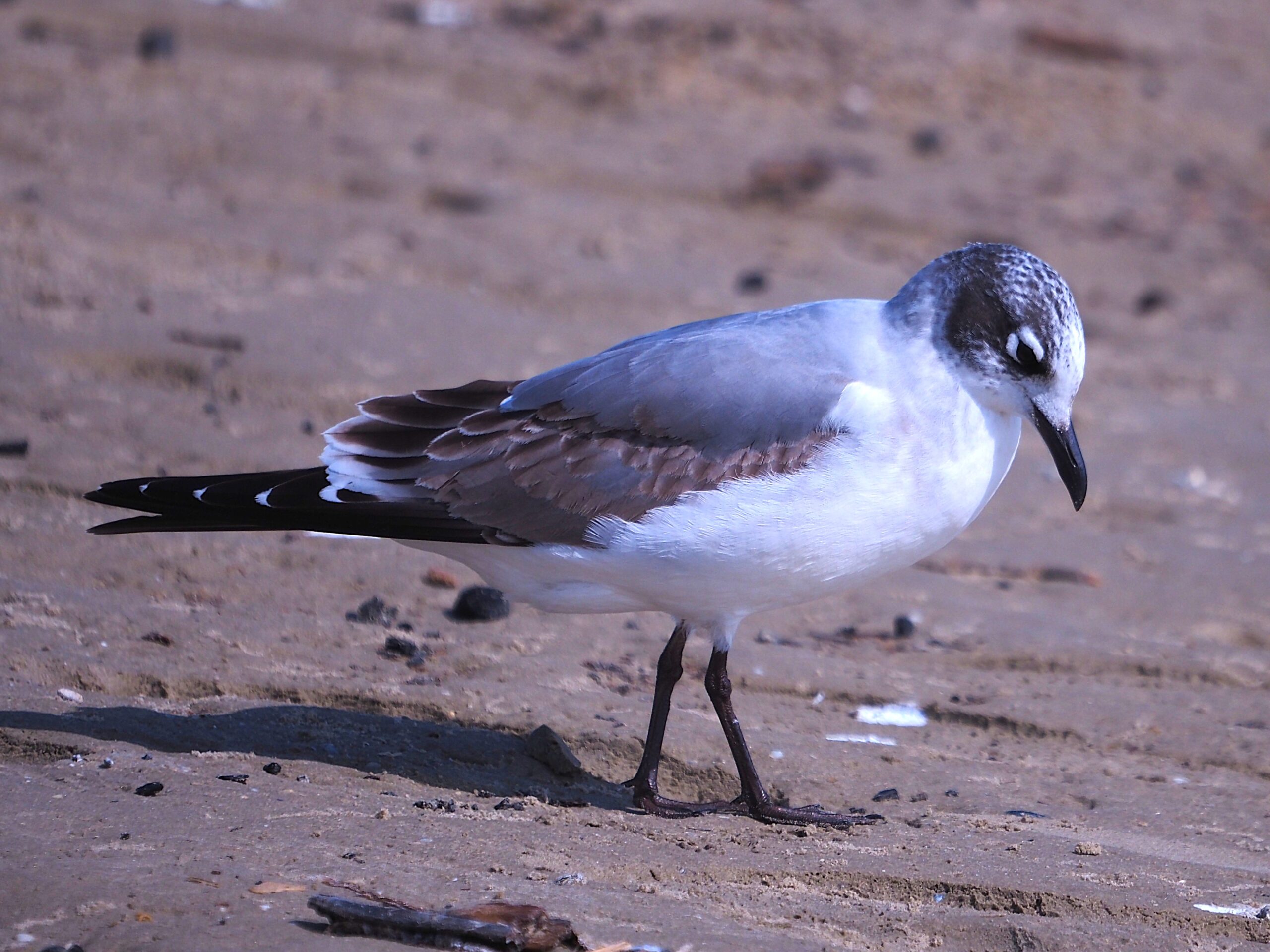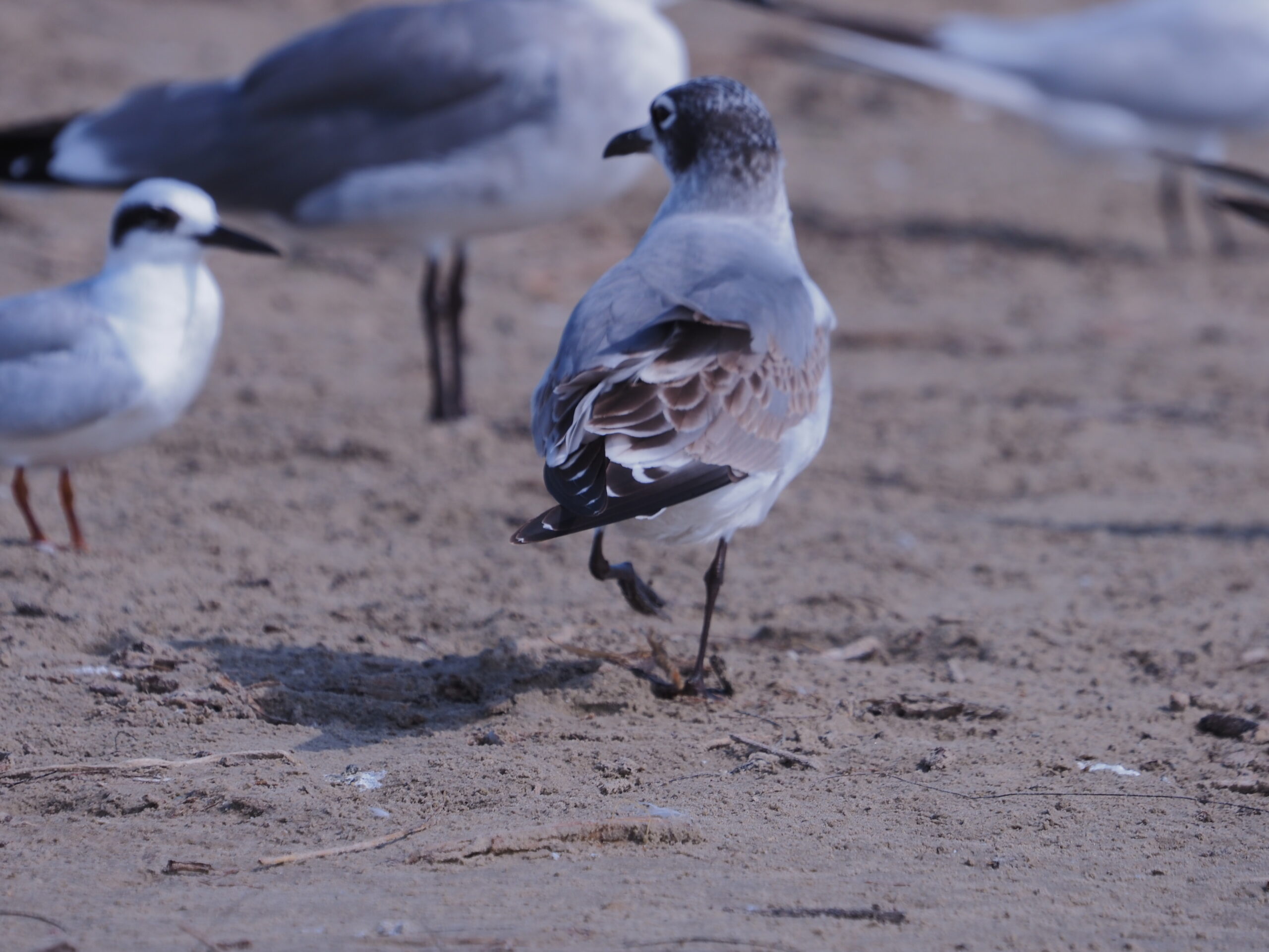 As a small gull Franklin’s begin to molt to adult-gray prior to their arrival in Texas in mid-October to early-November. Some of the sub-adult Franklin’s I have encountered in Texas are shown in the photos below. Note the fully adult-gray mantle and scapulars and the brown juvenile wing-coverts and wings.