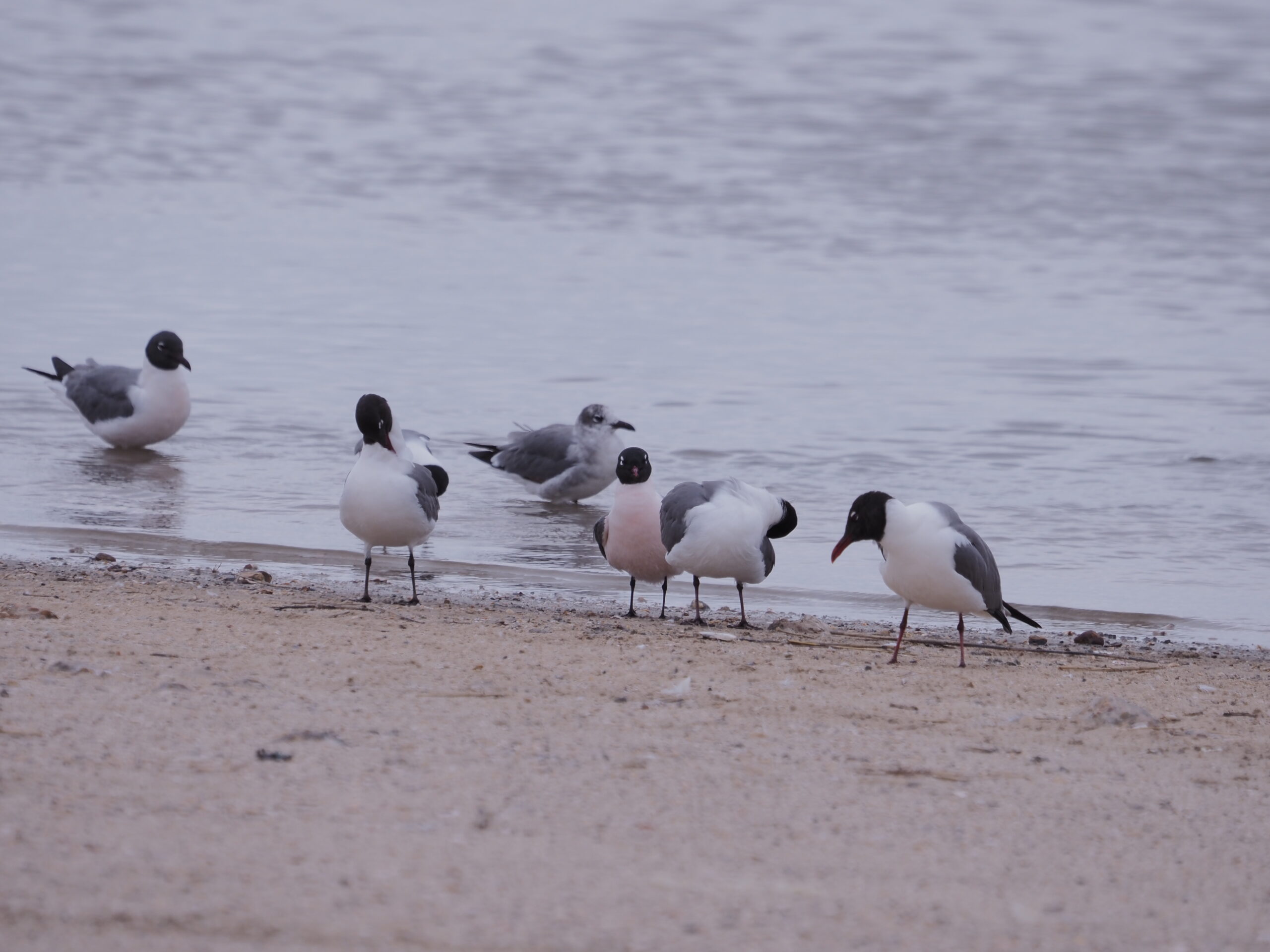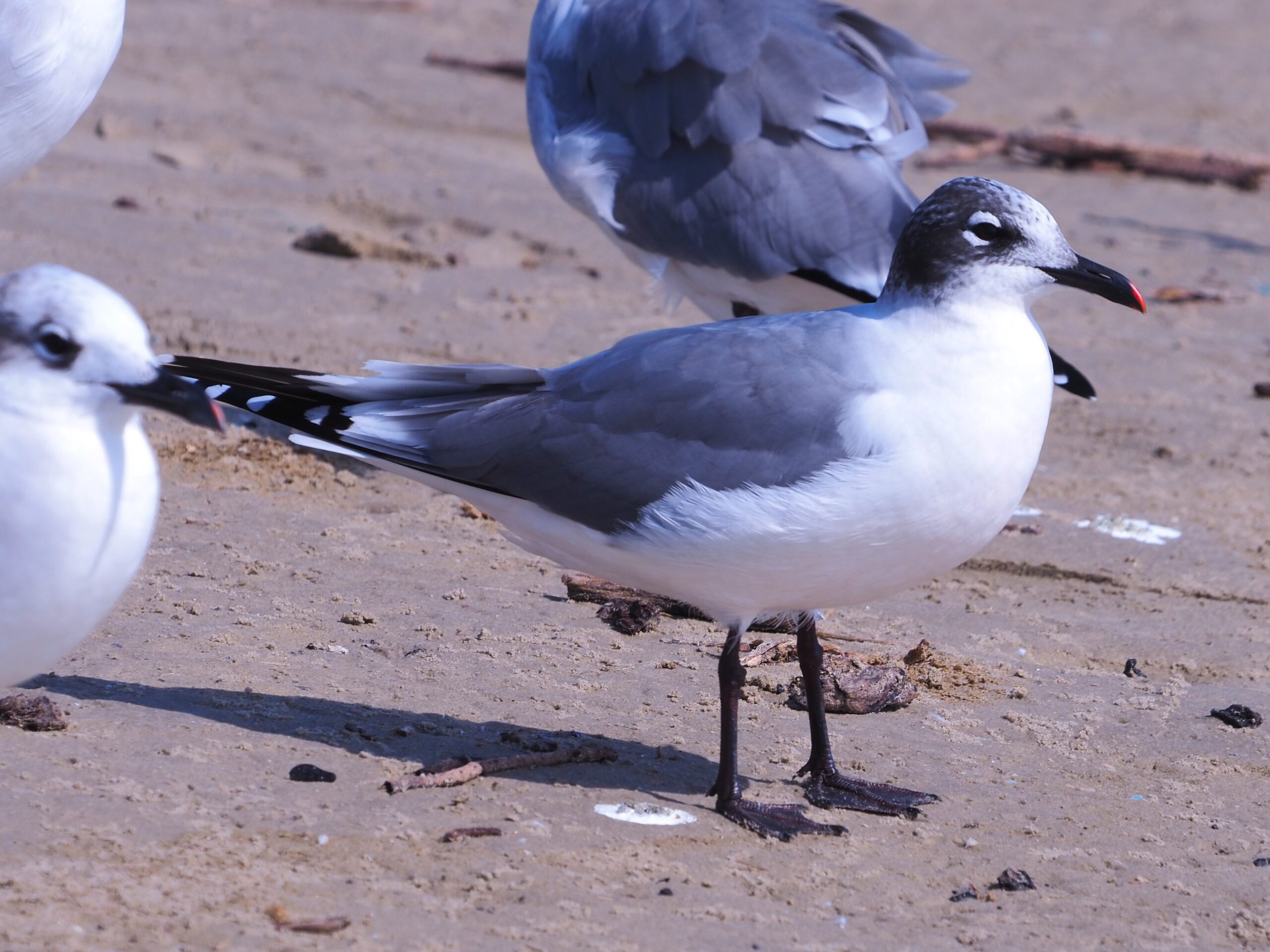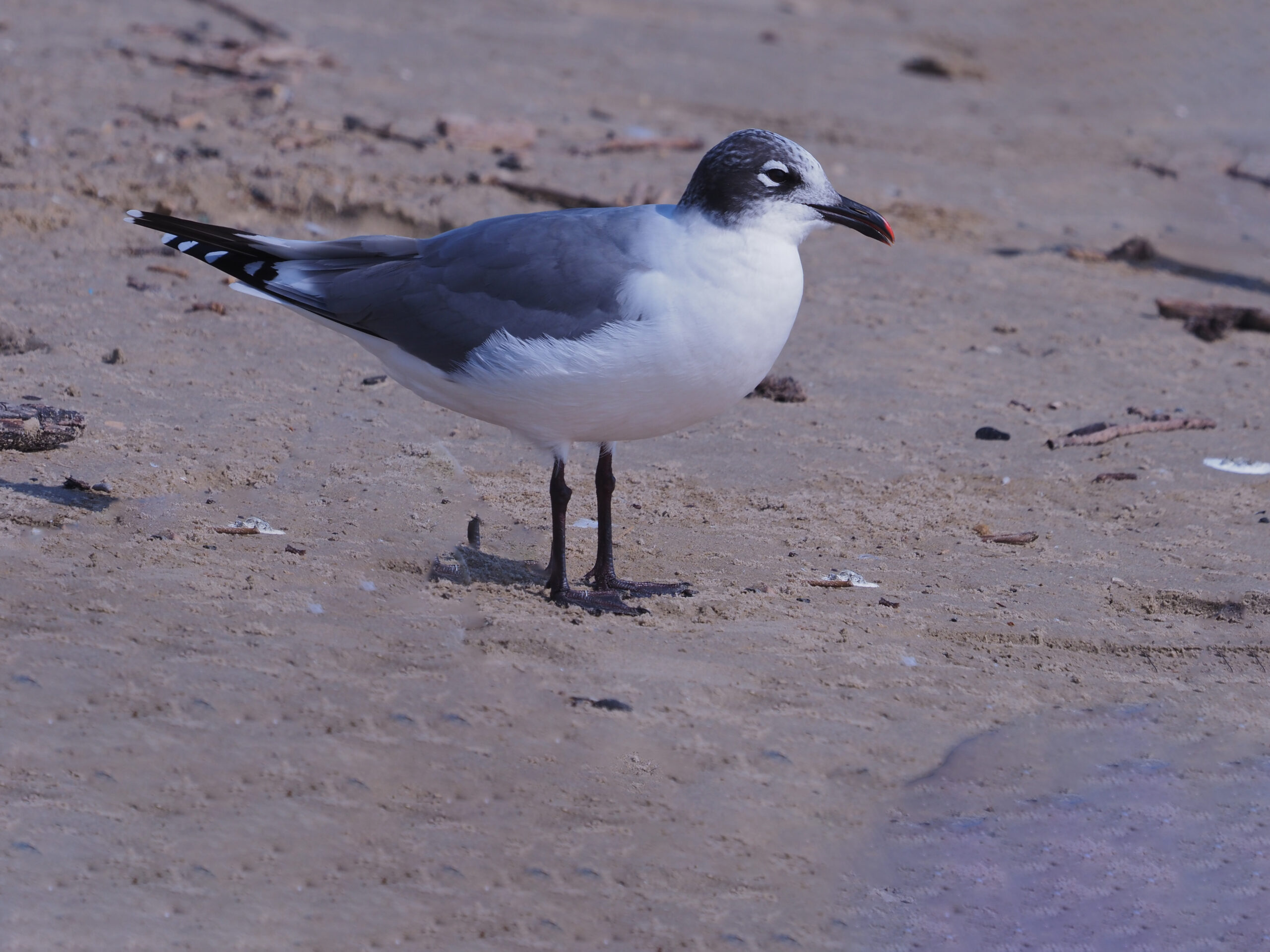 As a small gull Franklin’s begin to molt to adult-gray prior to their arrival in Texas in mid-October to early-November. Some of the sub-adult Franklin’s I have encountered in Texas are shown in the photos below. Note the fully adult-gray mantle and scapulars and the brown juvenile wing-coverts and wings.