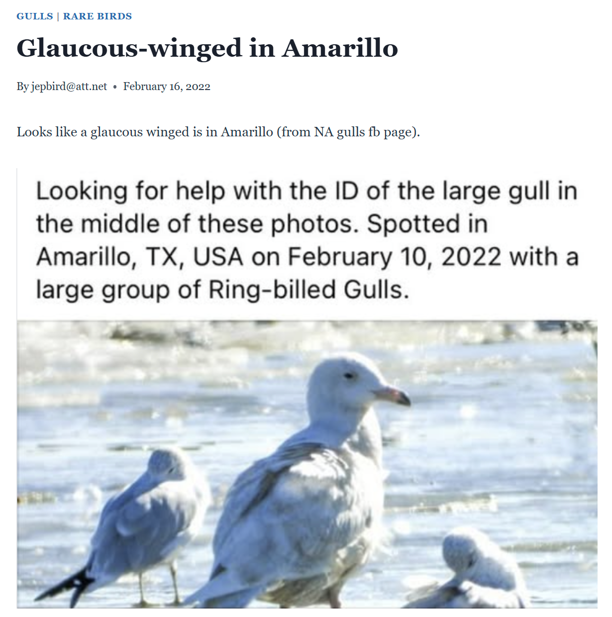 Looks like a glaucous winged is in Amarillo (from NA gulls fb page).