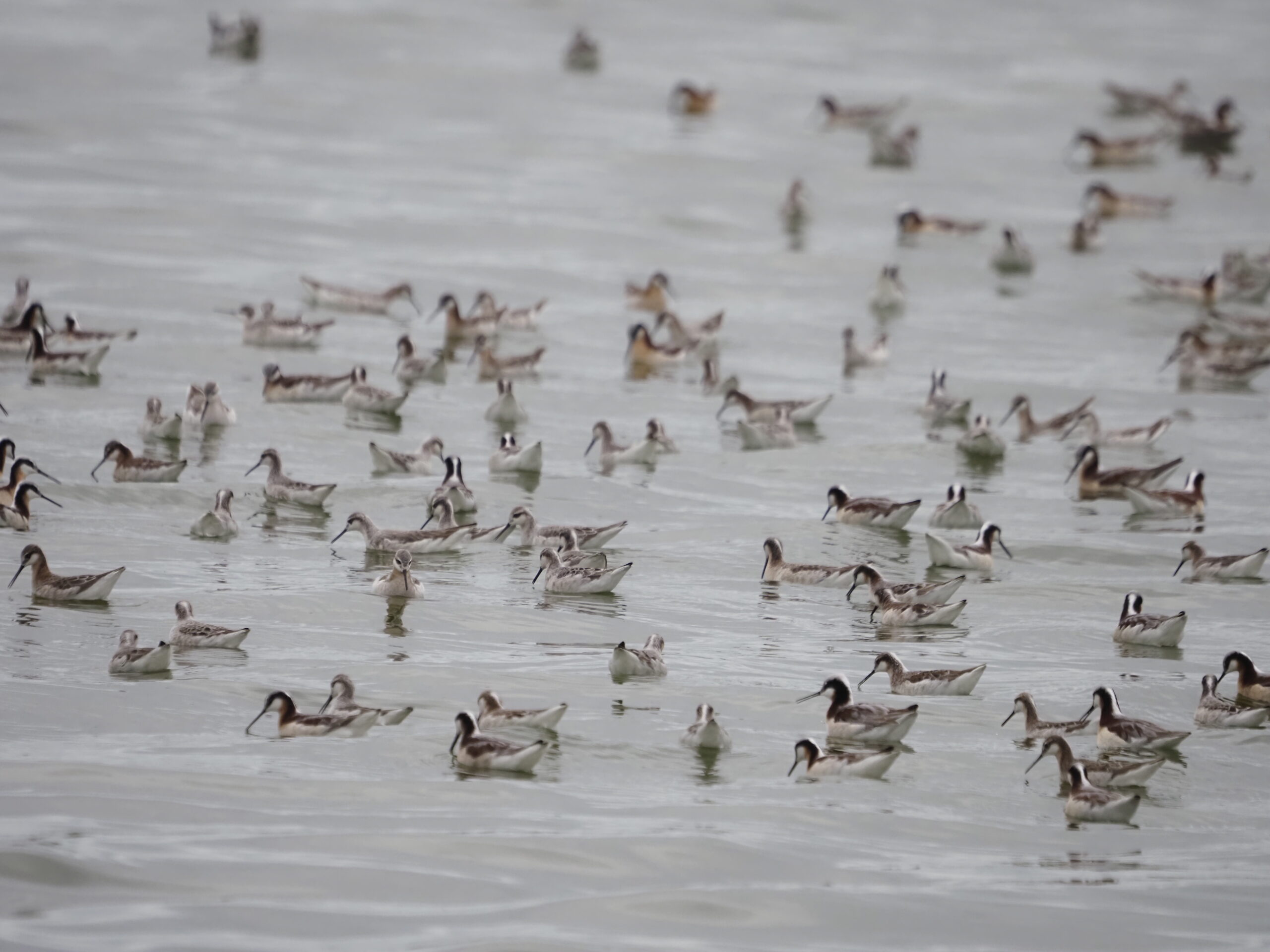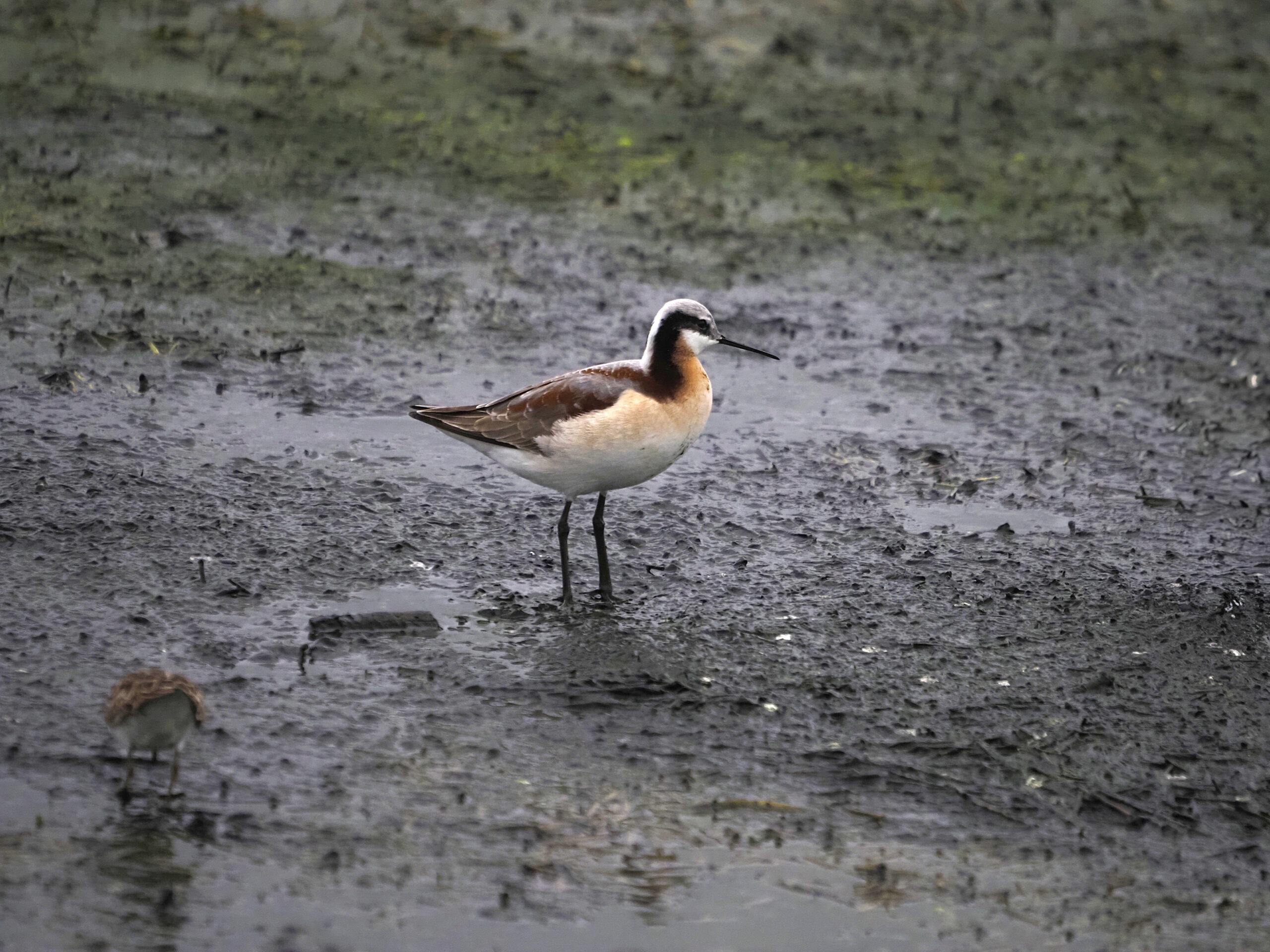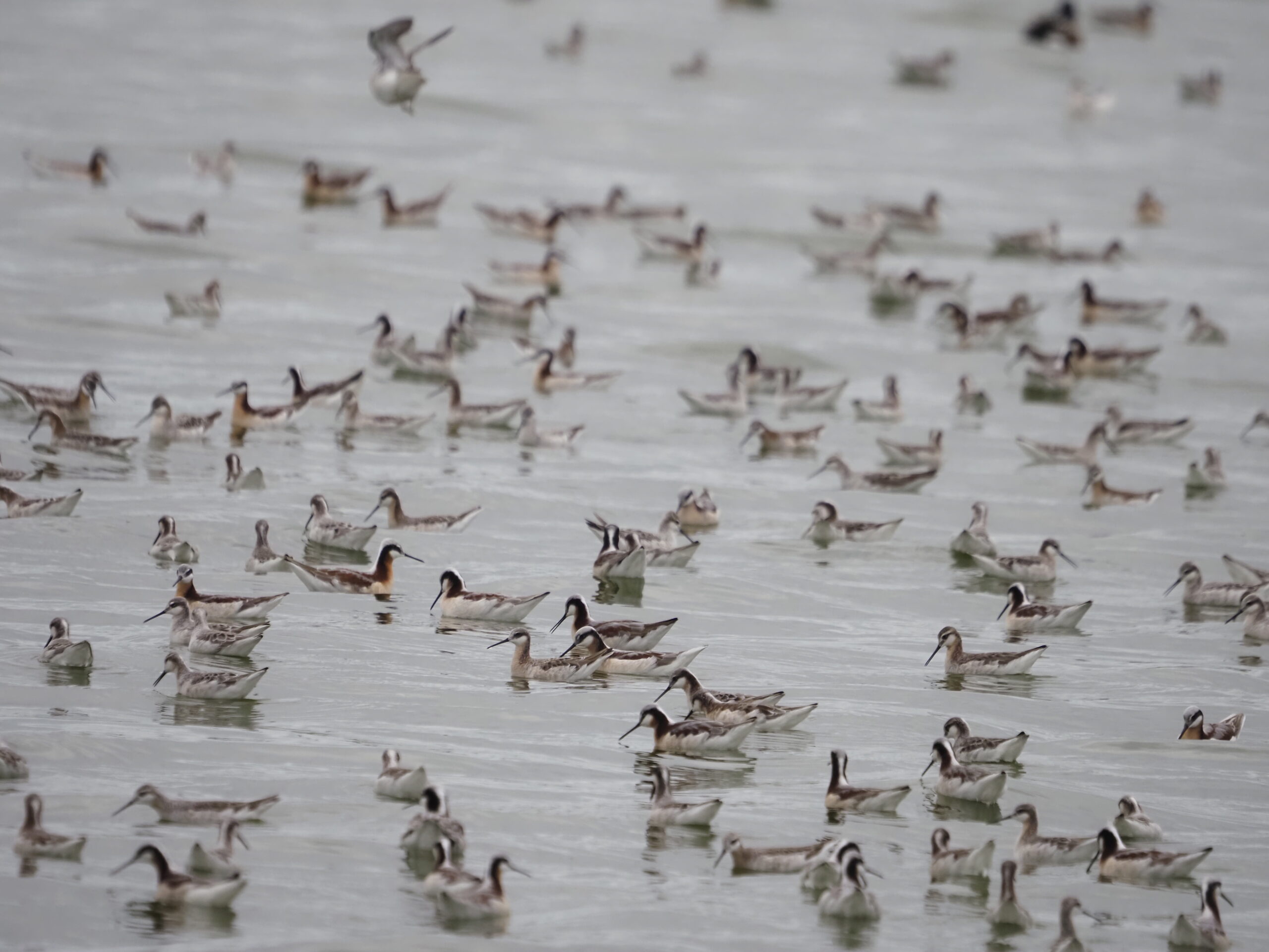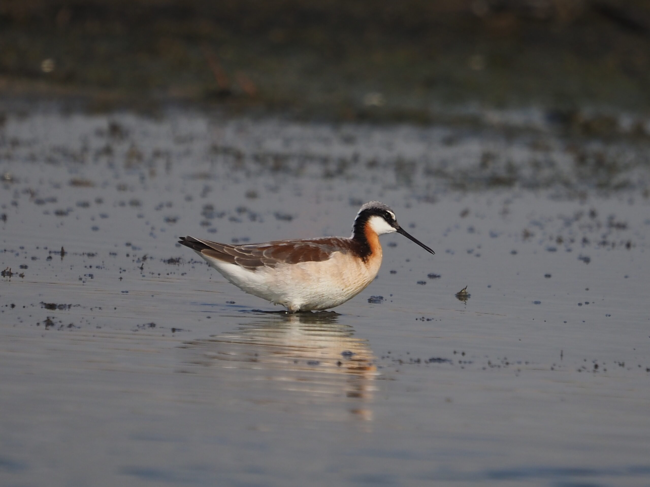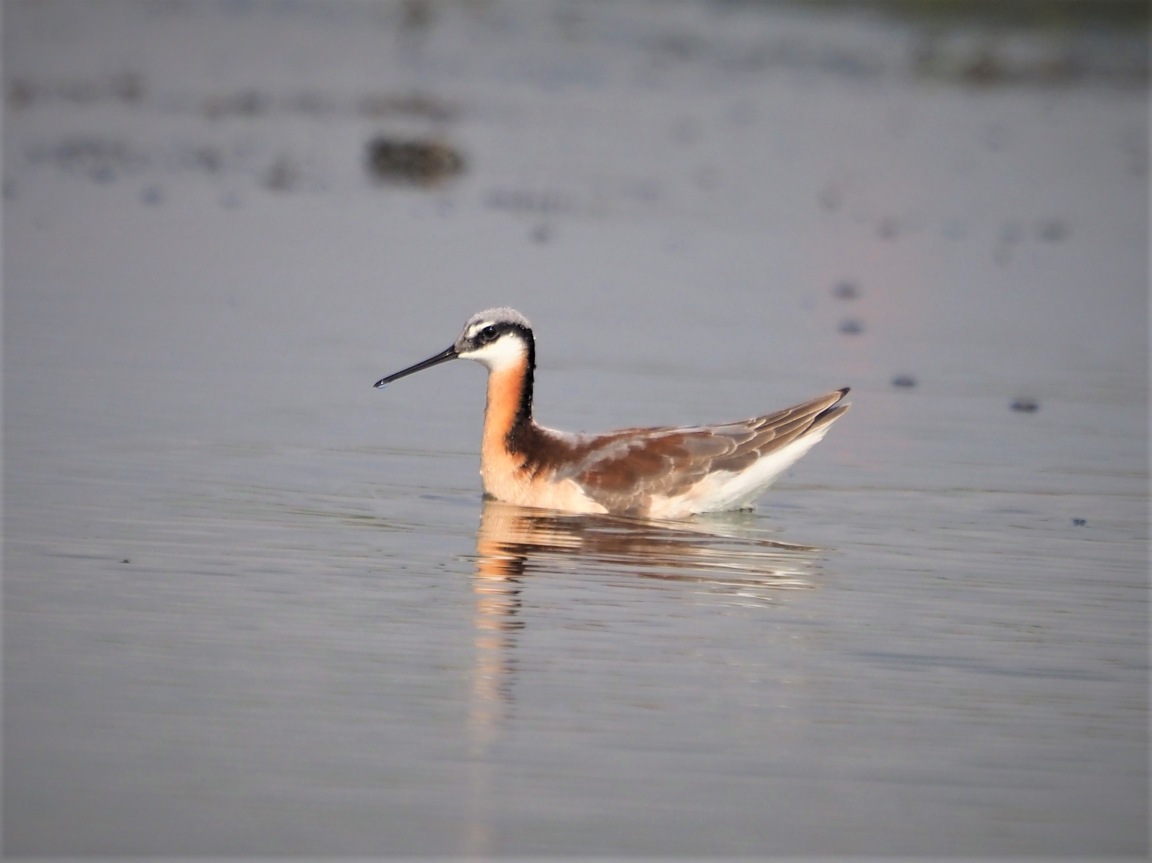 Wilson’s Phalarope are by far the most common phalaropes in Texas. They occur in both fall and spring migration and may gather in several hundreds. They are elegant and photogenic birds with thin needle-like bills and long necks. They often spin in circles on the water apparently creating a vortex which collects prey items. The bird pictured below with yellow legs is a first-year bird.