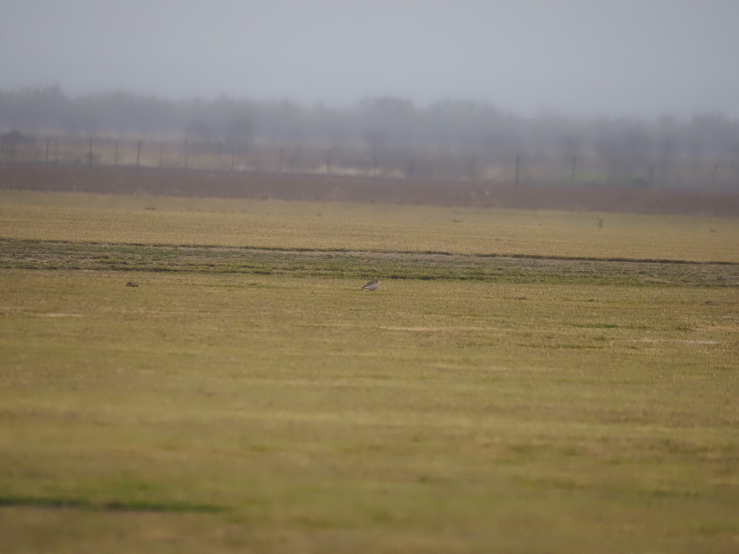 The Mountain Plover is often difficult to photograph or even to see. Their preferred habitat is large short-grass or plowed fields like this turf farm near San Angelo. Their fawn colored upper parts and white under parts are distinctive.