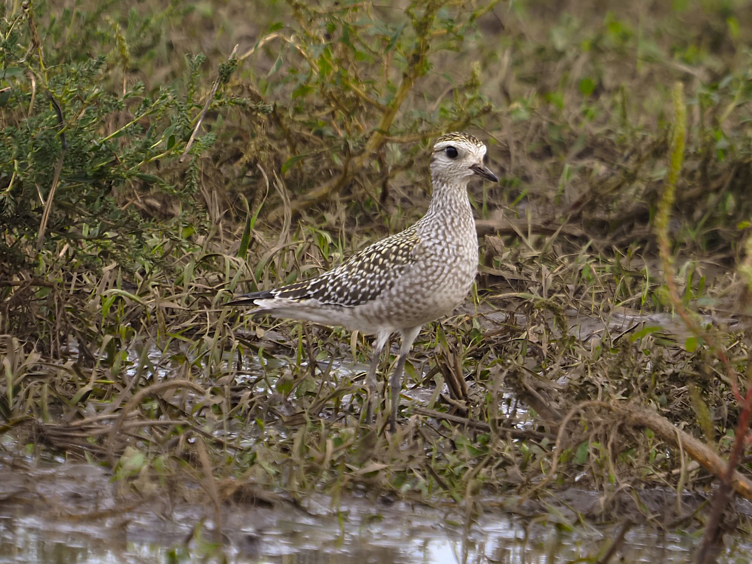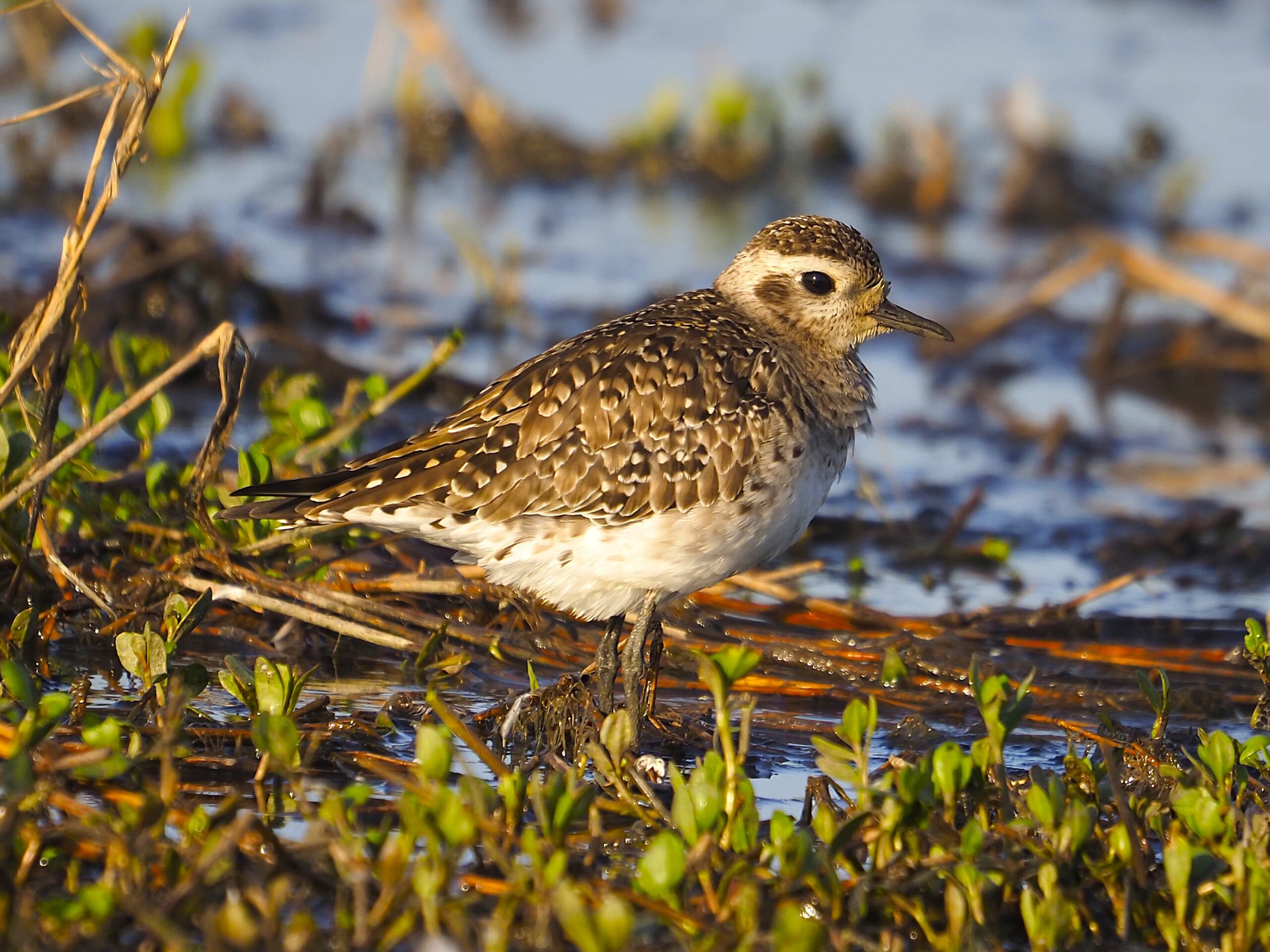The Black-bellied Plover is a common bird throughout the year on the Texas Coast, where its “peeoooweeee” call is iconic. In spring and fall they can be seen in various stages of very obvious molt when they lose or acquire their black bellies.