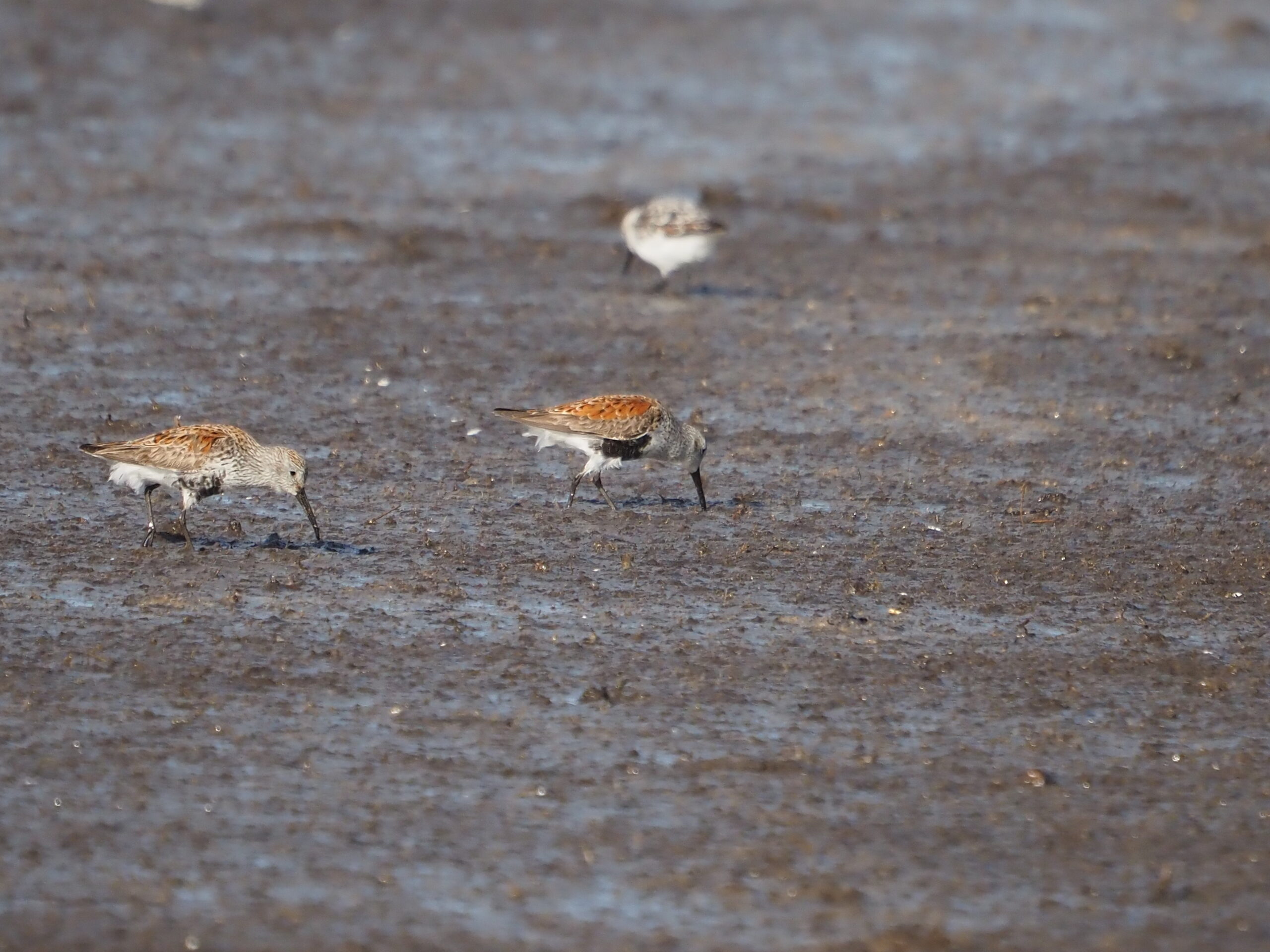 Dunlin are occasionally present in Central Texas during migration. These 3 individuals were at Hornsby Bend in October of 2024. The size difference between Least Sandpiper and Dunlin is apparent in several of the photos.