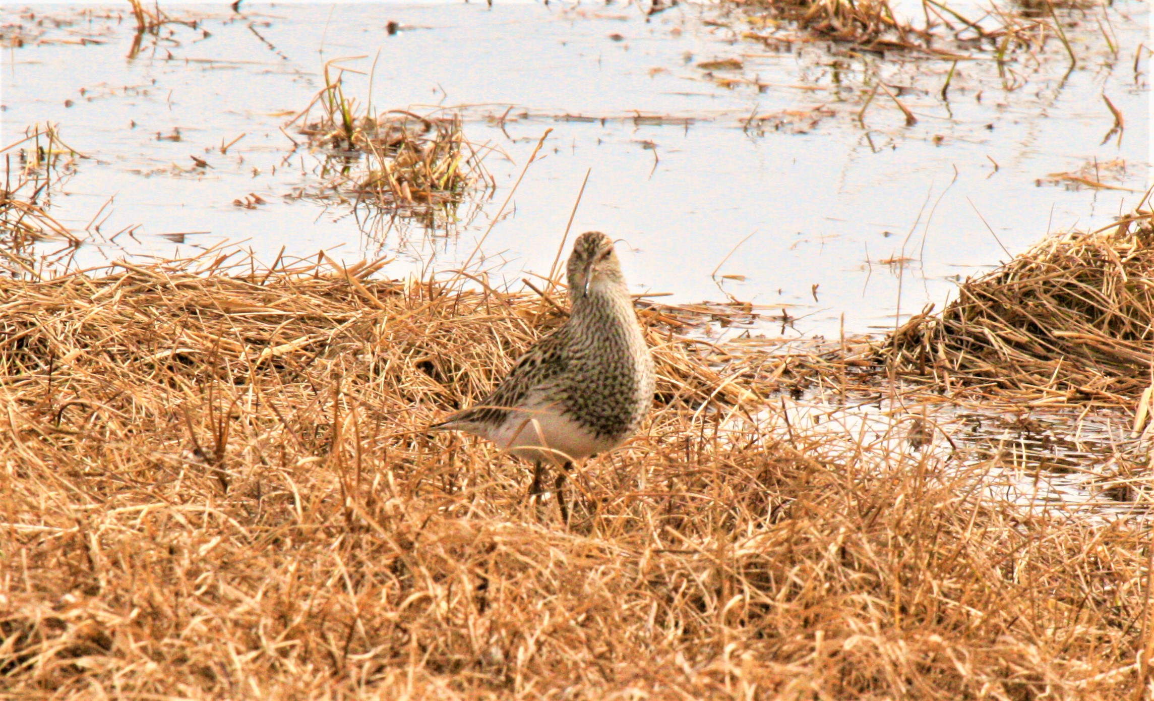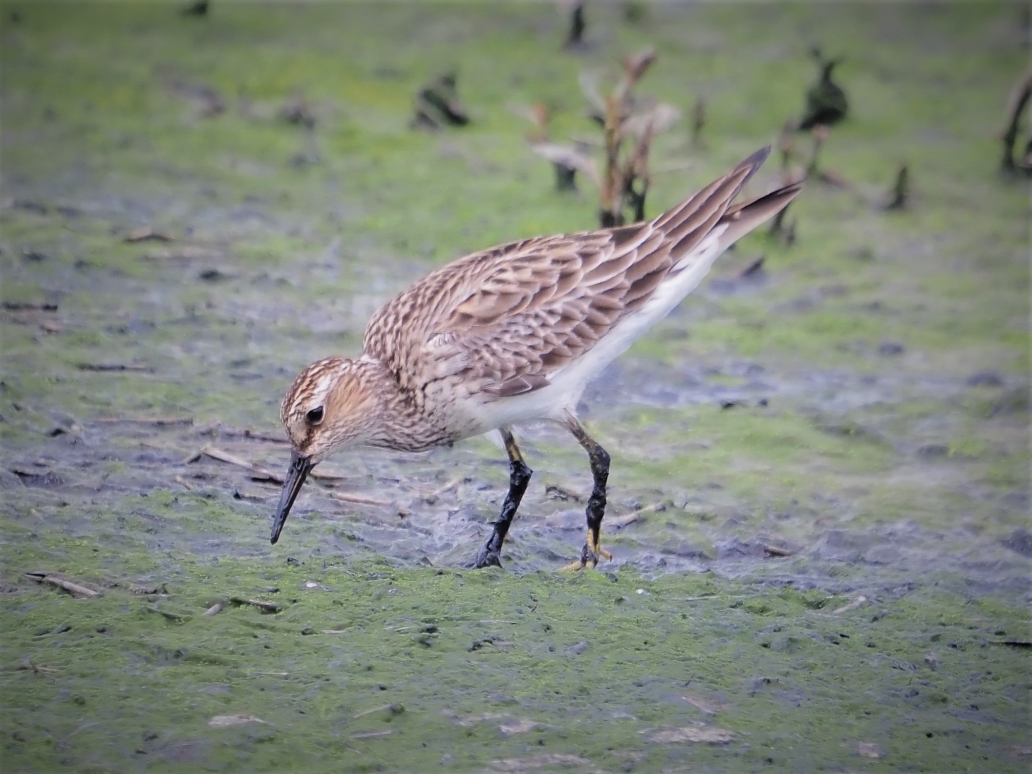 The Pectoral Sandpiper is named for its showy pectoral sacks which the males inflate and deflate while flying to make a deep, eerie whistle which is used in mate attraction and territory defense. This first group of photos were taken in June on the breeding grounds in Alaska.