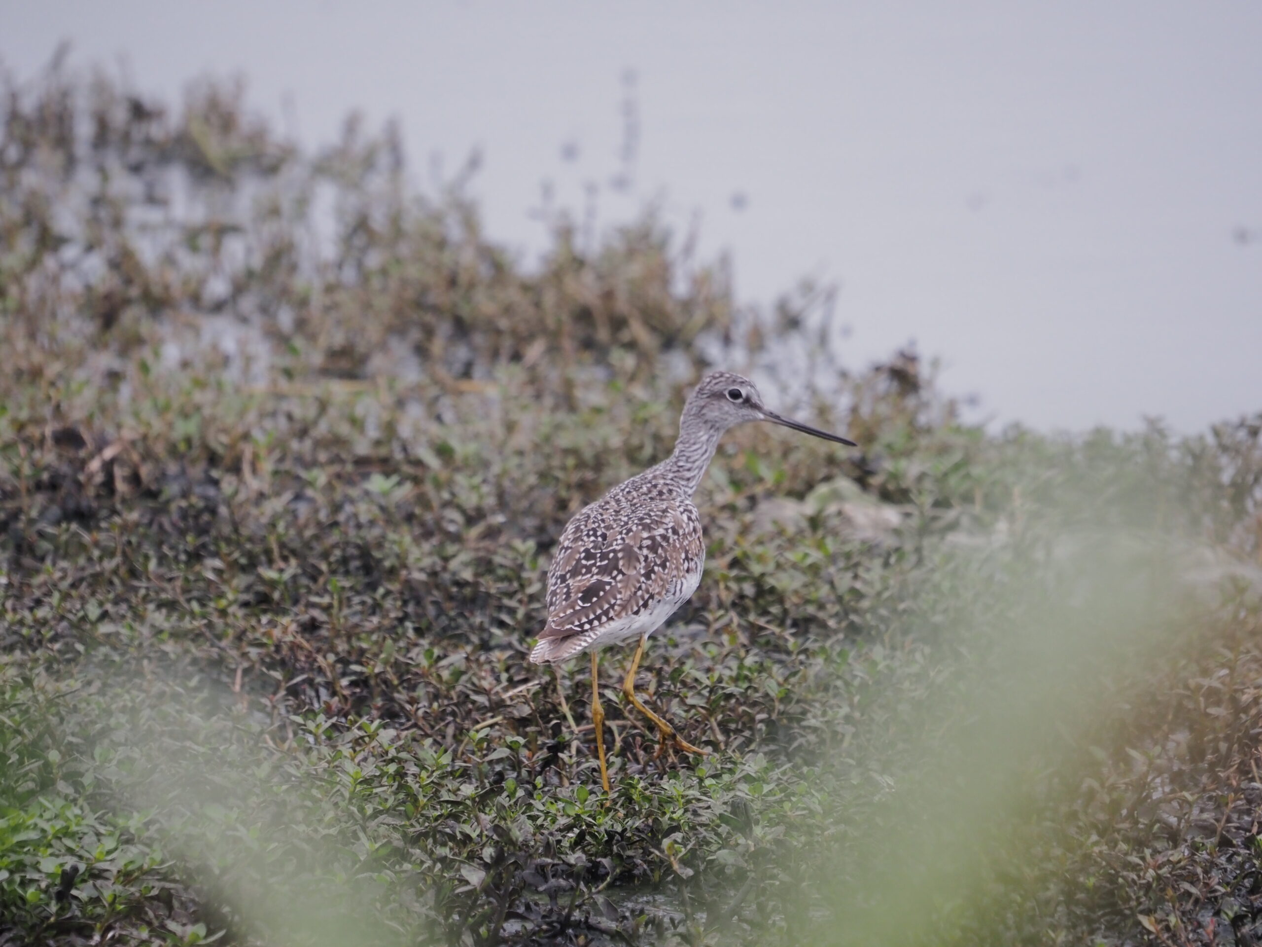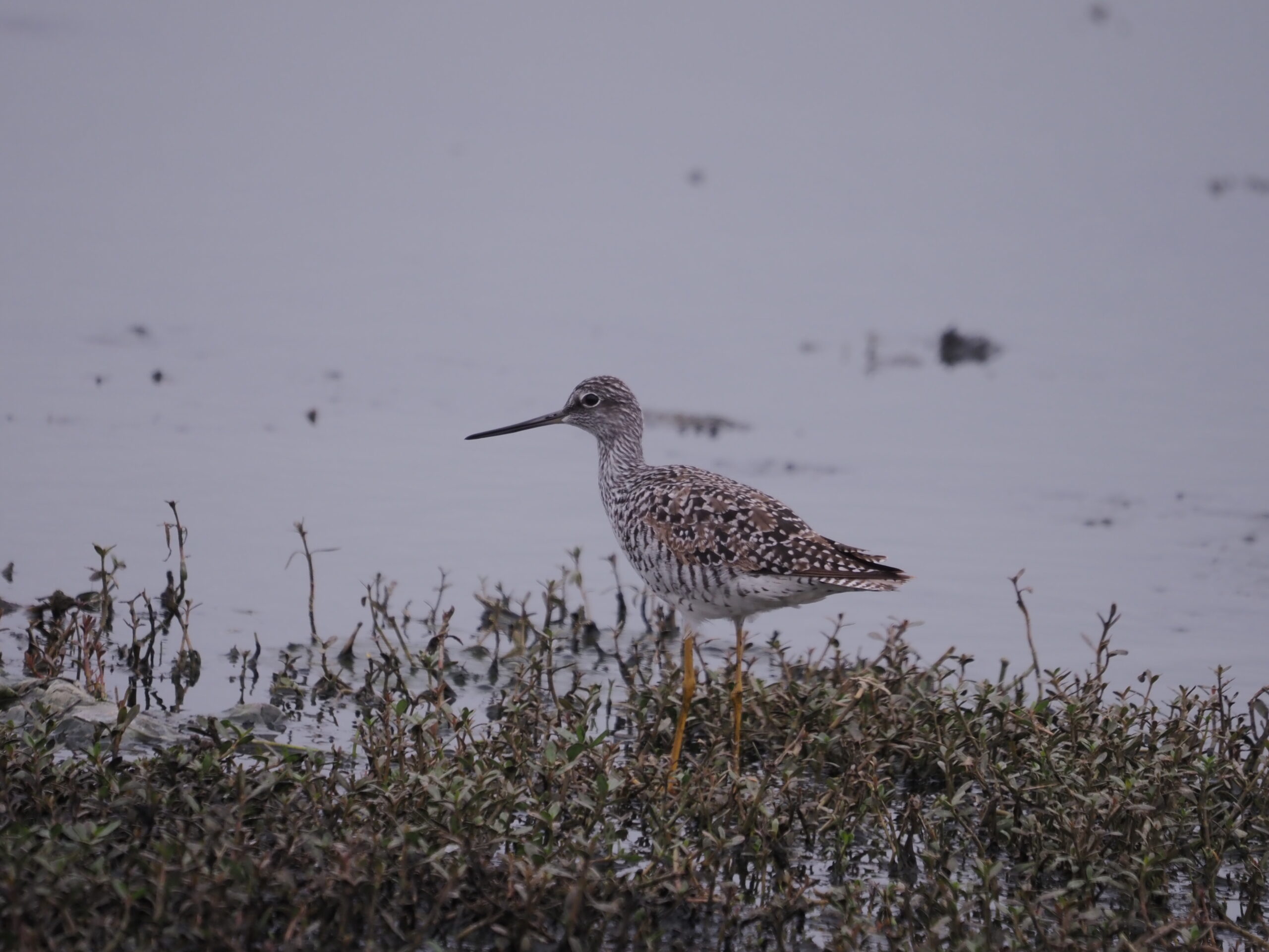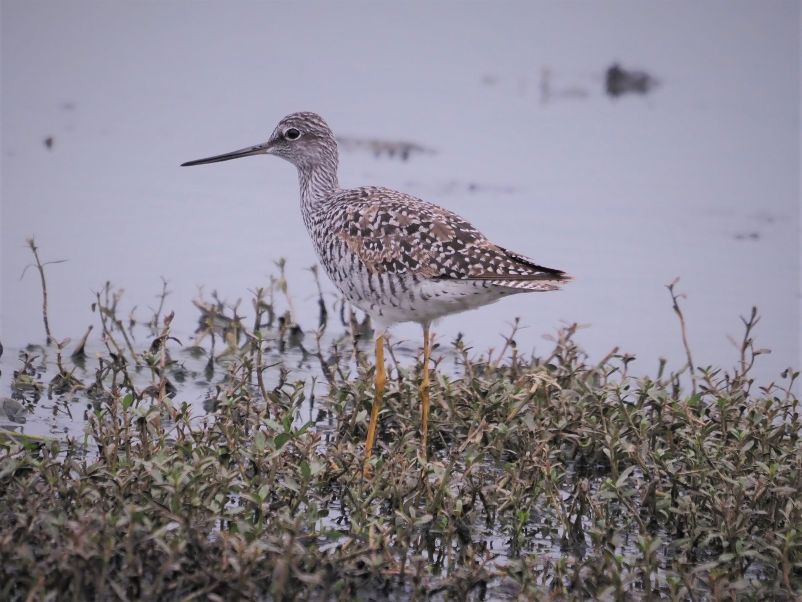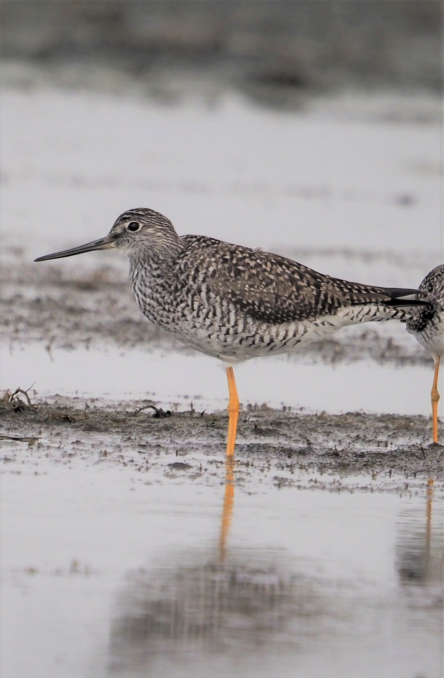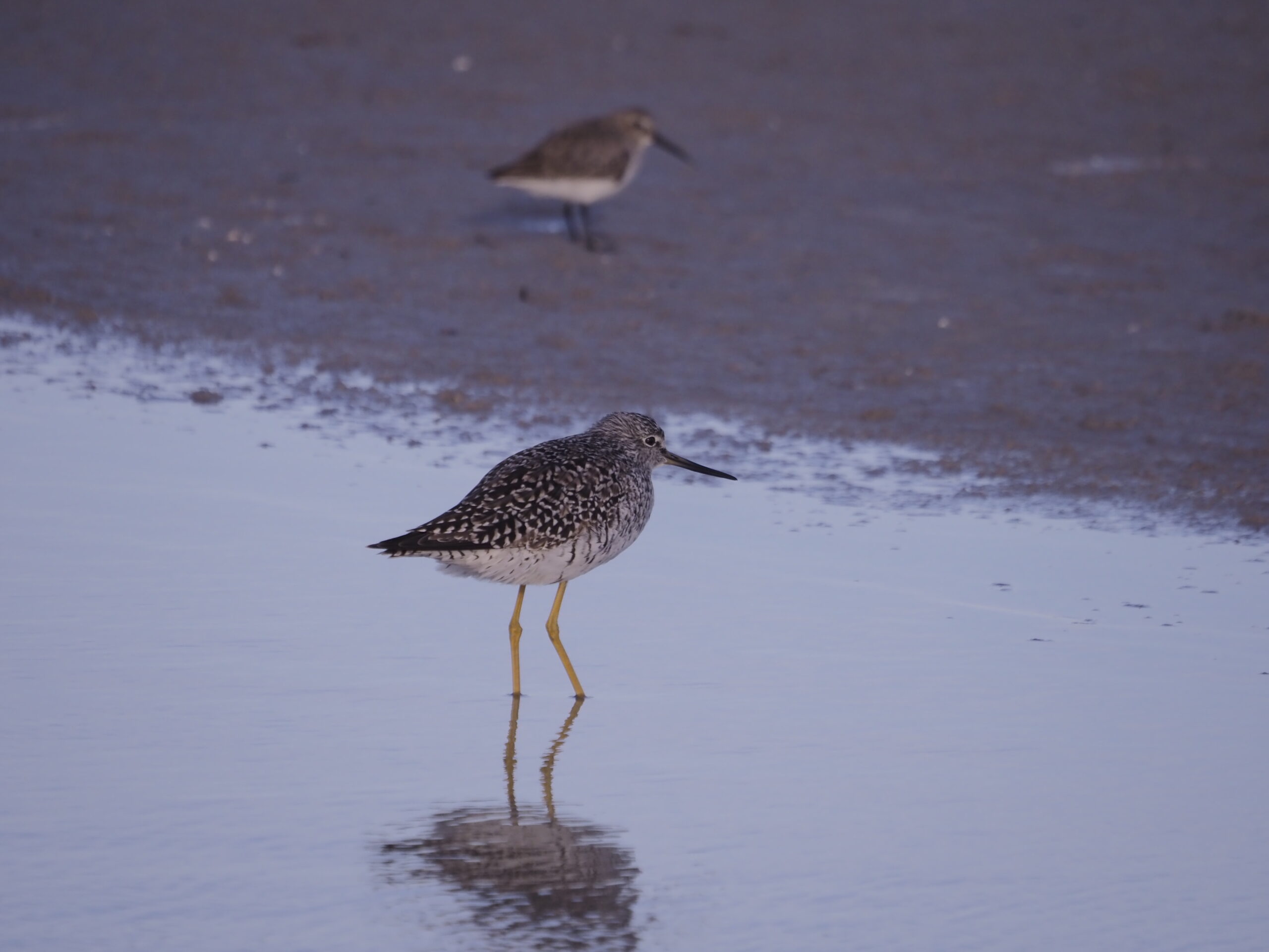 The Greater Yellowlegs is a large robust shorebird with long yellow legs and a sturdy, longish and slightly kinked upward bill. Like all shorebirds it is most colorful in its alternate plumage. It also has more barring on its flanks in alternate.