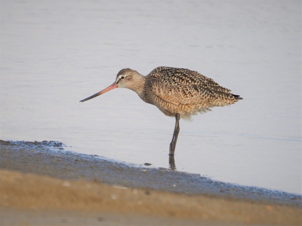 The Marbled Godwit is a fairly common bird on the Texas Coast year-round, and is occasionally seen in Central Texas during migration. It is not a difficult ID once the large, two-toned, slightly up-turned bill and warm brown tones are noted.