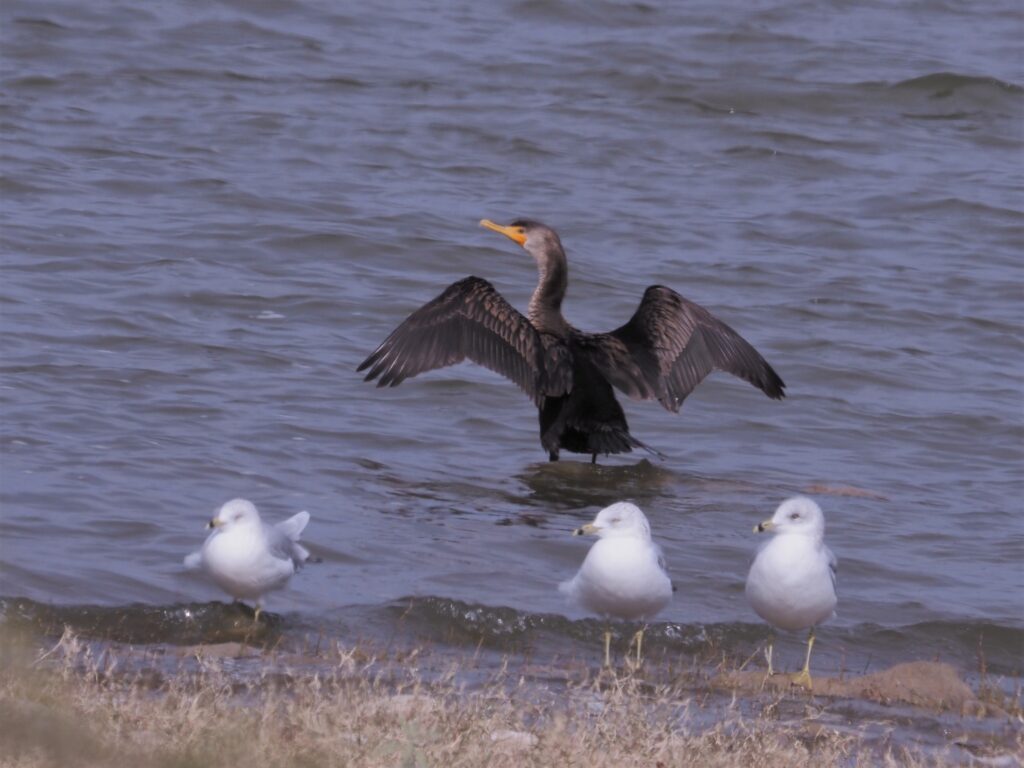 Gull #3 for Gulls class. (Same day, location) Gull #3 is an Adult Herring. We can see that this is an adult gull. Pretty distant shot, but if you zoom in we don’t see any ring as in ring bill, but more telling the transition from gray underwing to black underwing tip is more gray-to-black…
