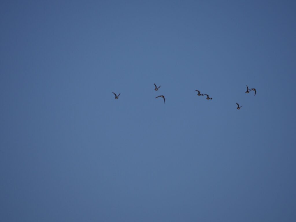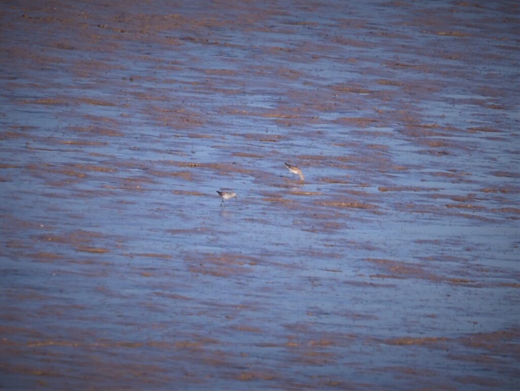 Conditions look pretty good there for shorebirds. I had 5 flocks of peeps fly by, but only able to scope 2 groups that landed.