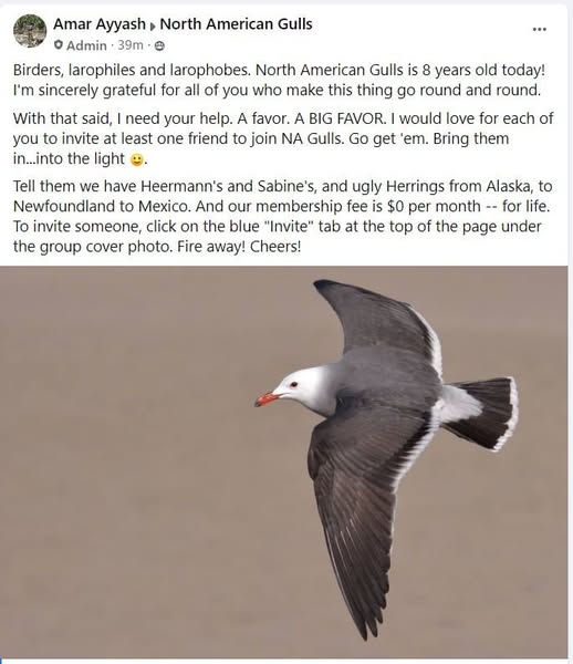 Amar Ayash is requesting new members for “North American Gulls”– you guys should sign up!!!