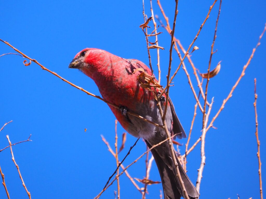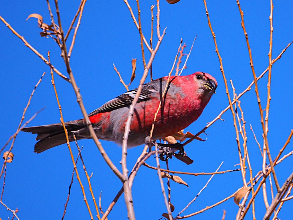 After the gull I drove 2 hours north from Amarillo (who knew there were still 2 hours of Texas north of Amarillo?) for the reported Pine Grosbeak — new for my Texas list. Spent about 20 minutes photographing this lovely bird.