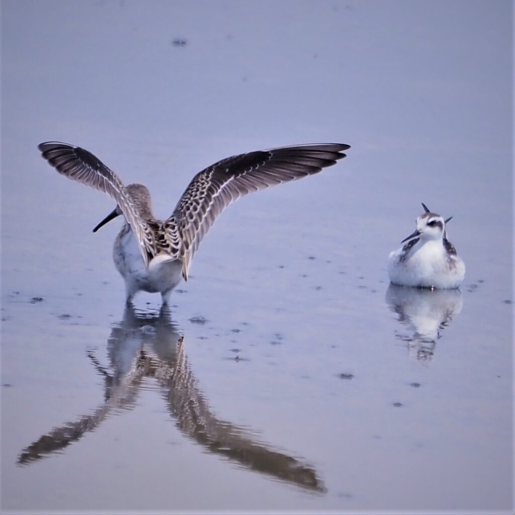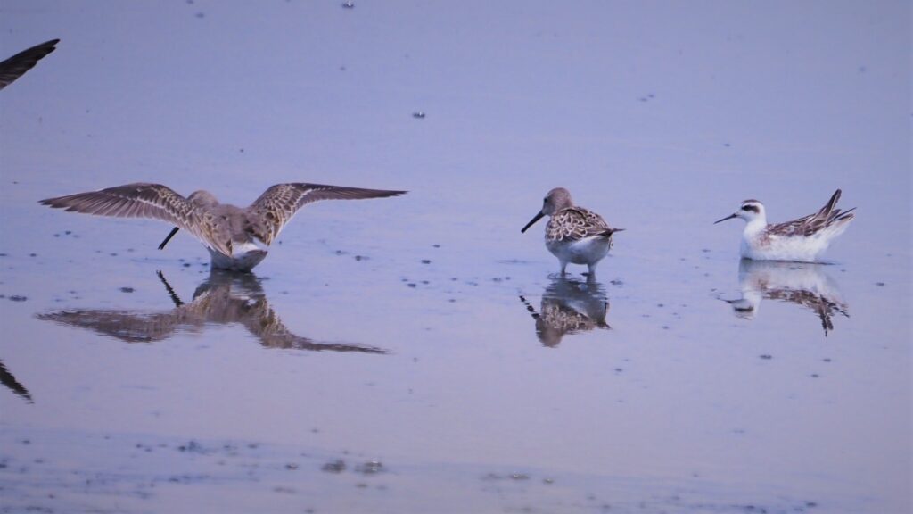14 species of shorebird at Hornsby this morning. I’m surprised I haven’t seen Western or WHite-rumped Sandpipers yet. The fun part today was 20 Hudsonian Godwits flying over the ponds and then 4 landed and stuck around for 15 minutes.
