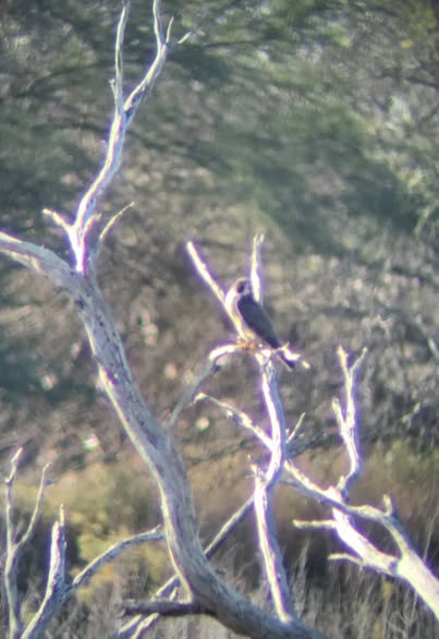 Bat Falcon — That’s him on top of the telephone pole just left of the water tower. Got him after about 15 micro-seconds of very dedicated and difficult searching. We saw the Social Flycatcher too, but all my pix (from the scrum) were of Kiss-Katies.