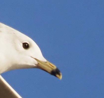 Gull #1: I found this one very interesting. Initially it seems straight forward Ring bill. But on 2nd look we see quite a dark eye which points to either another species (e.g. California or Iceland gull) or a sub-adult gull.