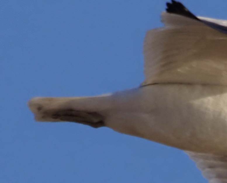 Finally, if you zoom in close on the tail there appears to be several faint and small smudges of dark coloration – another point for late sub-adult gull.