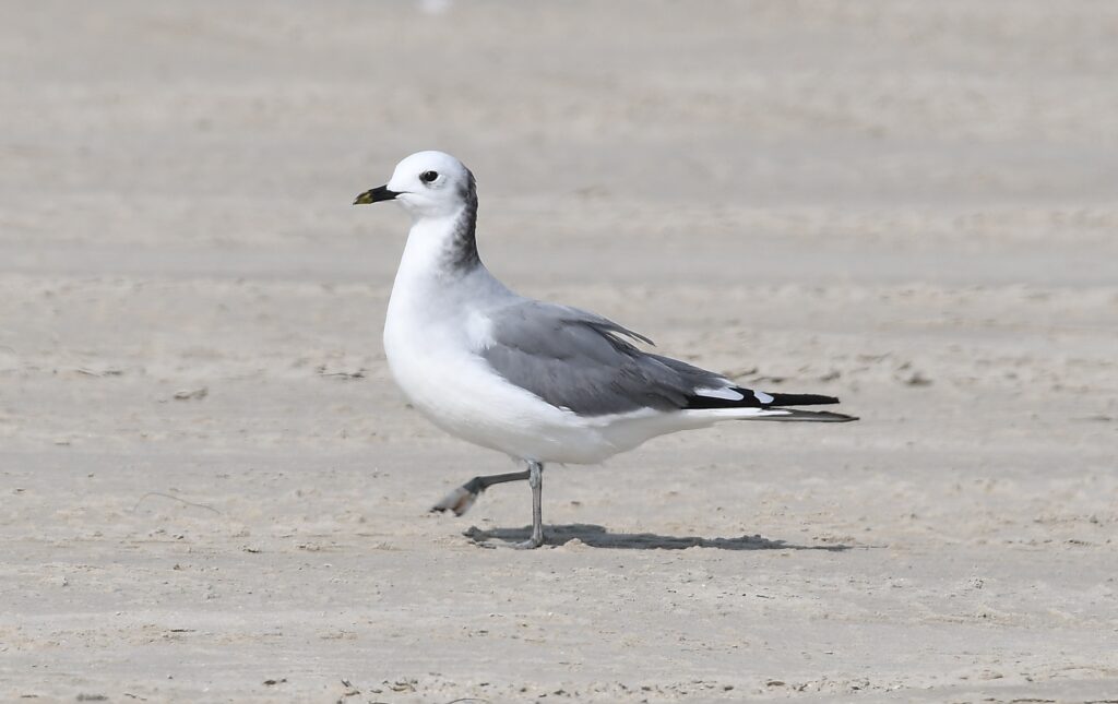 Based on the fully adult back, but with a grayish hind-neck, I believe this Sabine’s, photographed by Lance Felber in November of 2025 in Port Aransas, Texas, is a sub-adult. Note the high and elongated back-half of the bird, its long neck and petite overall proportions.