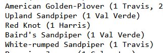 Here’s a couple of sightings at Hornsby that might interest some of our future repeat offenders from Shorebird Class. (Not my sightings, reported on Ebird daily). Remember a couple of our elliptical migrants we didn’t expect to see this fall? Several asked about the possibility of seeing in the fall.