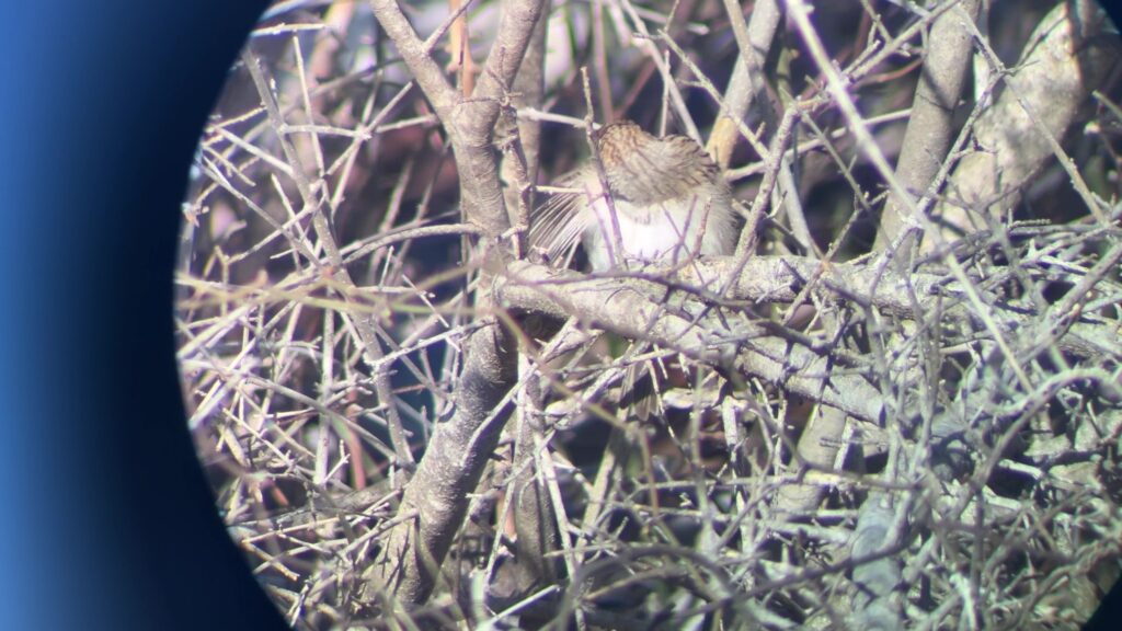 While we’re on the subject of spizellas: Here’s a few Brewer’s Sparrow pix from trans Pecos. The last pix is the Will Co Brewer’s from Sparrowfest. It’s a still from a digi-scoped video of him. Tried to get a bit of his nape.