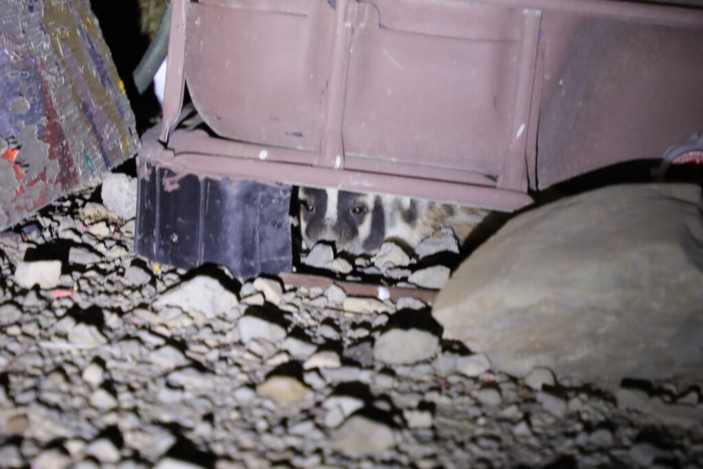 That black blob is the bear. We pointed it out to a man and his son and they told us “That’s the 9th bear we’ve seen today!!!”. I responded with “Well… we saw 10!!!”, but I was joking of course. The badger hung out under that water tank for 2 hours. He’d growl if we got close. I was afeared for my ankles![]()