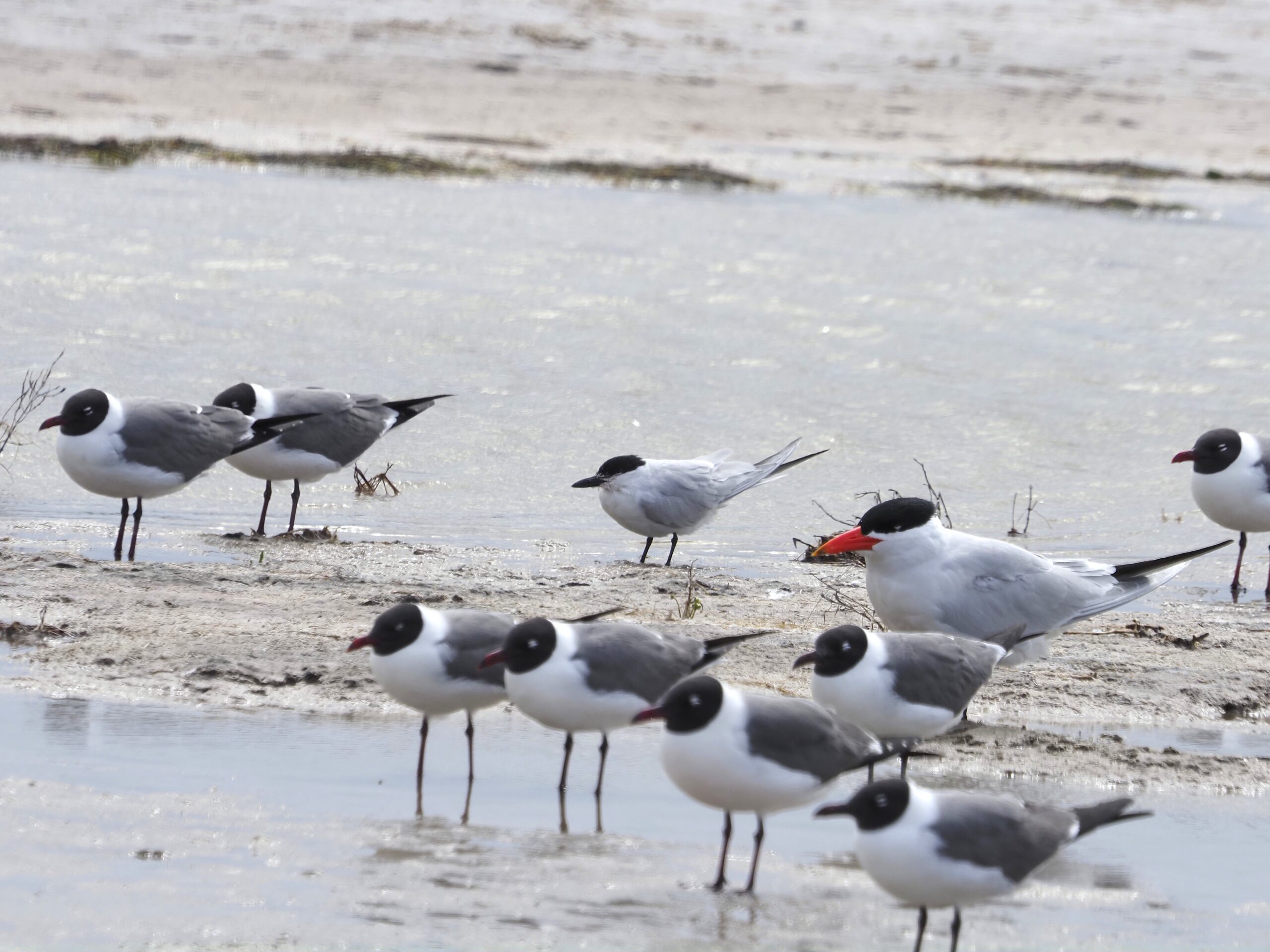 The Common Tern is a fall and spring migrant on the Texas Coast, and a few over-winter as well. At some locations during migration it can be the most numerous medium tern. I’m calling it the “Common Carpel” because in basic plumage it usually shows a dark carpel bar where the upper-wing bends into the body.