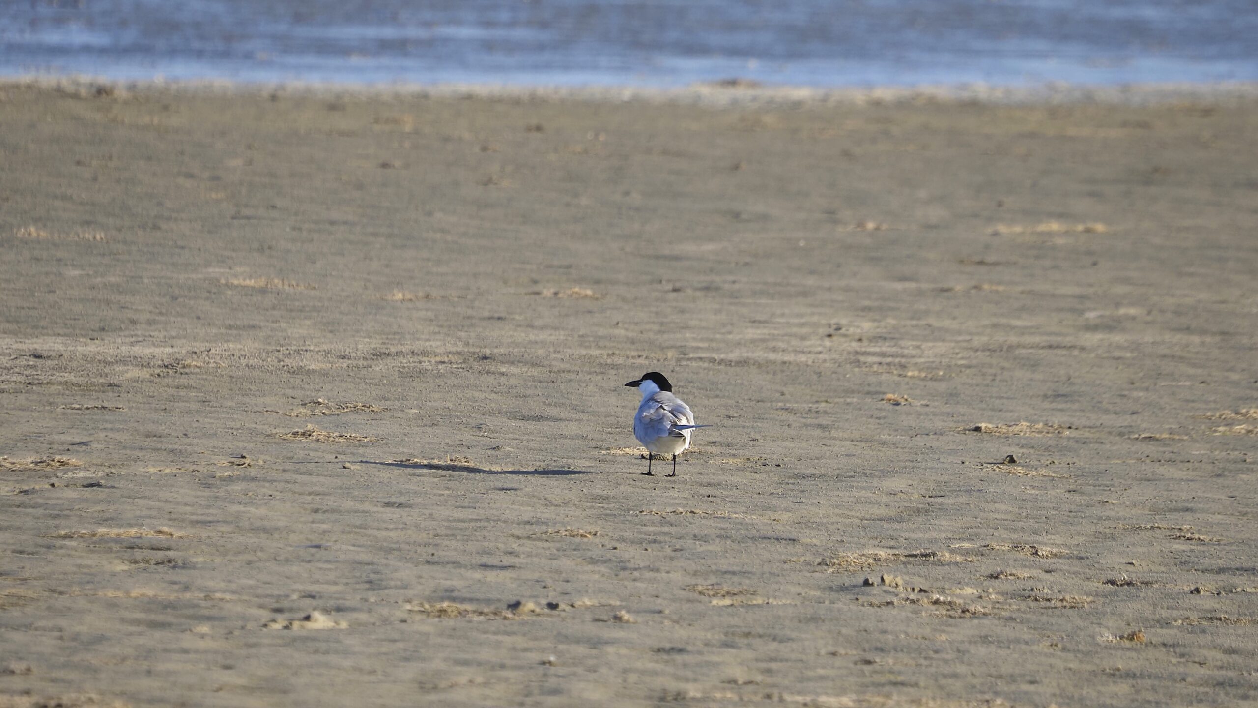 In alternate plumage the Gull-billed shows a black head, with very little crest. It is whiter and has proportionately longer legs than other terns.
