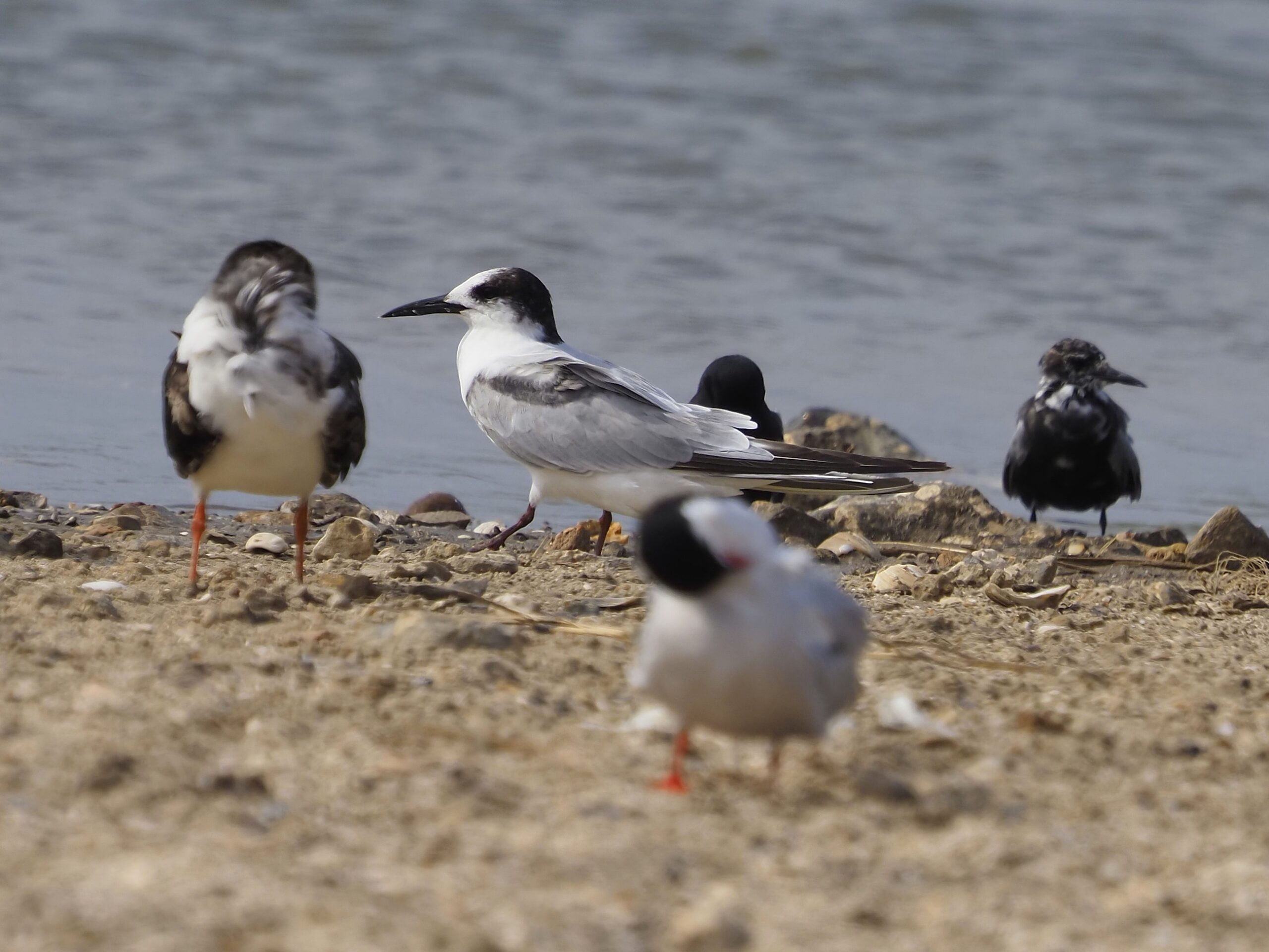 A medium tern in basic with a black hind-crown & nape can be safely identified as a Common. (No photos as yet).