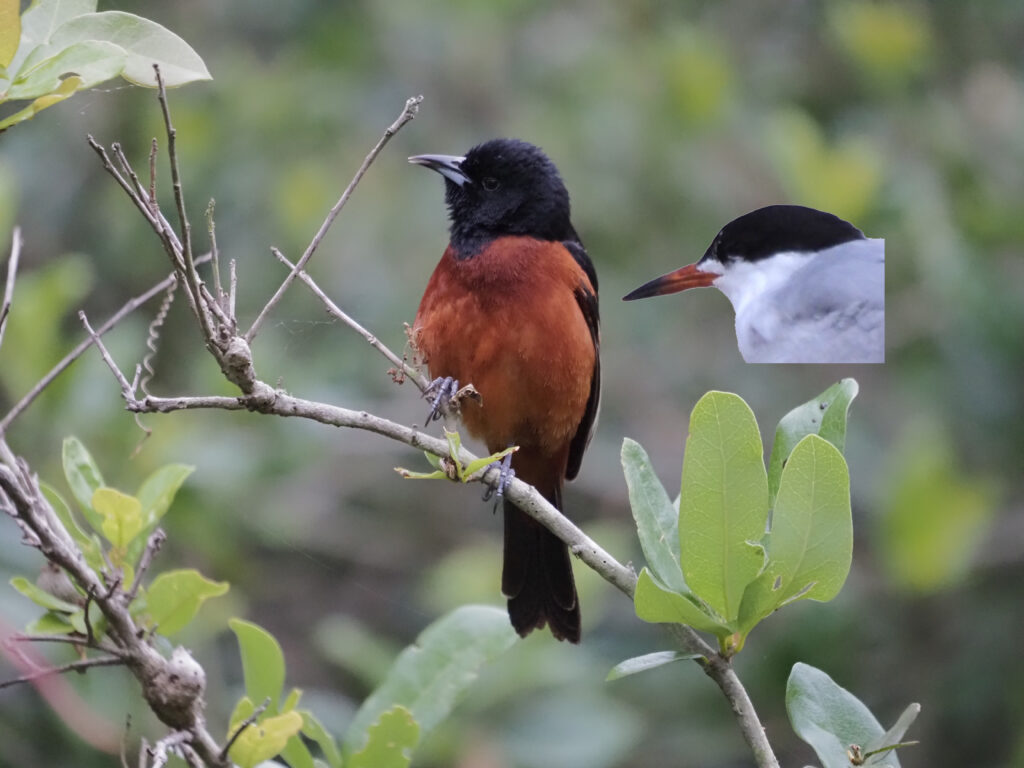 The bill color on alternate terns can be ambiguous, but in general the Forster’s is orange (analogous to the Baltimore Oriole), while I call the bill color of the Common “burnt-red” (analogous to the Orchard Oriole). When transitioning from basic to alternate the Forster’s bill can also appear burnt-red, so care must be taken with this field mark.