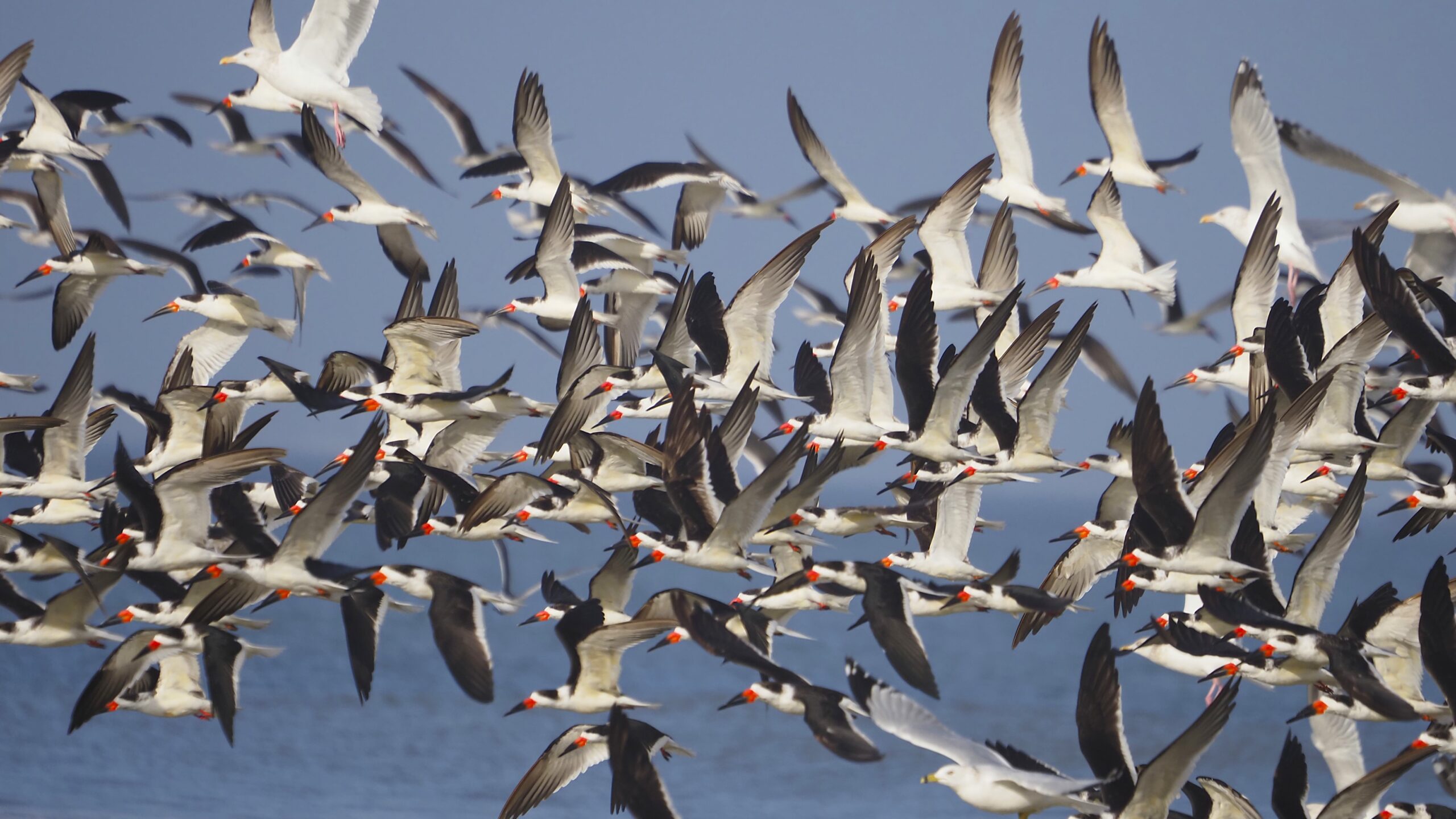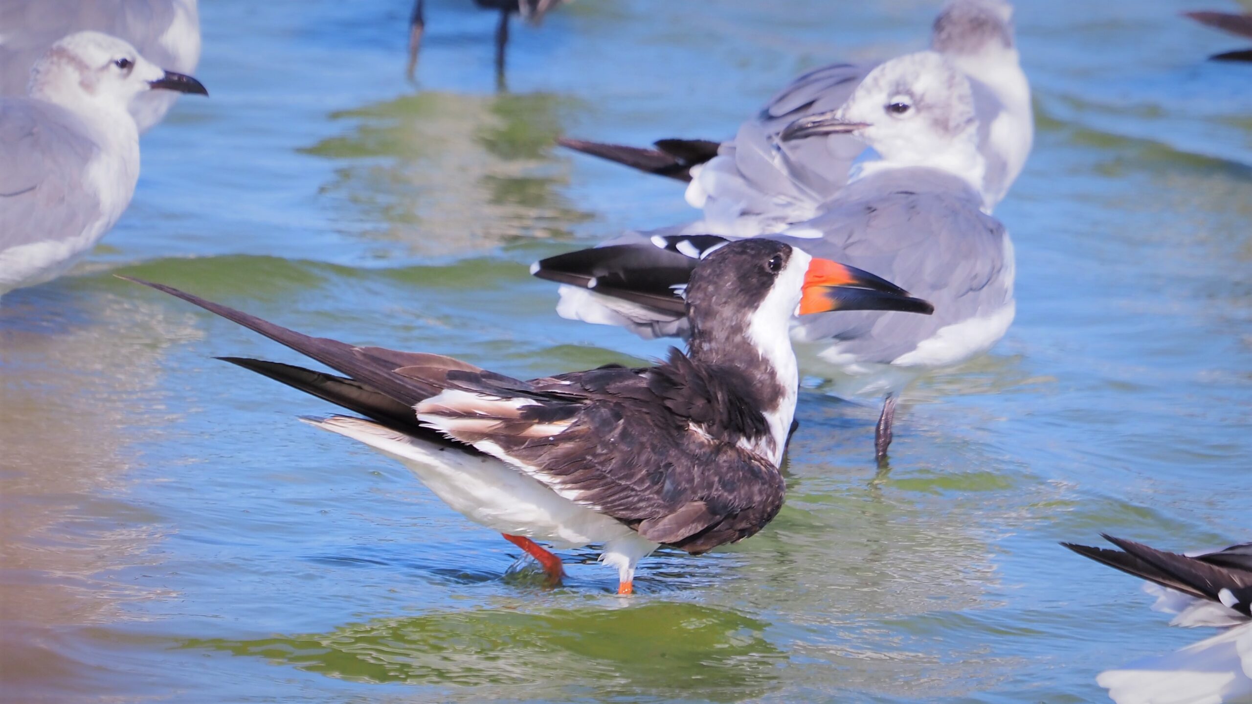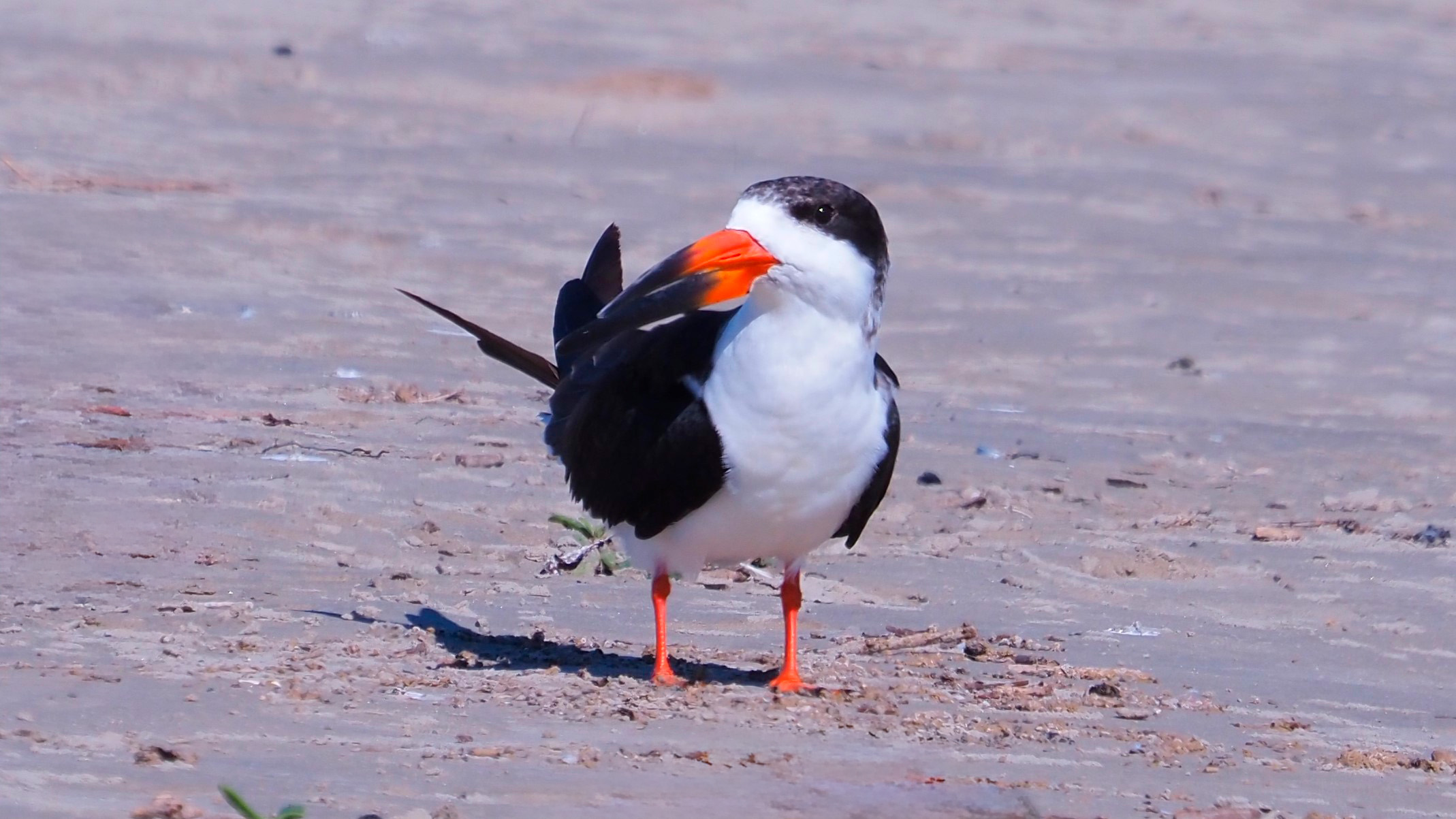 The iconic Black Skimmer needs no nickname!! It is an easily identifiable year-round resident of the Texas Coast where it skims along the surface of the water and snatches prey with its unique black & orange bill.